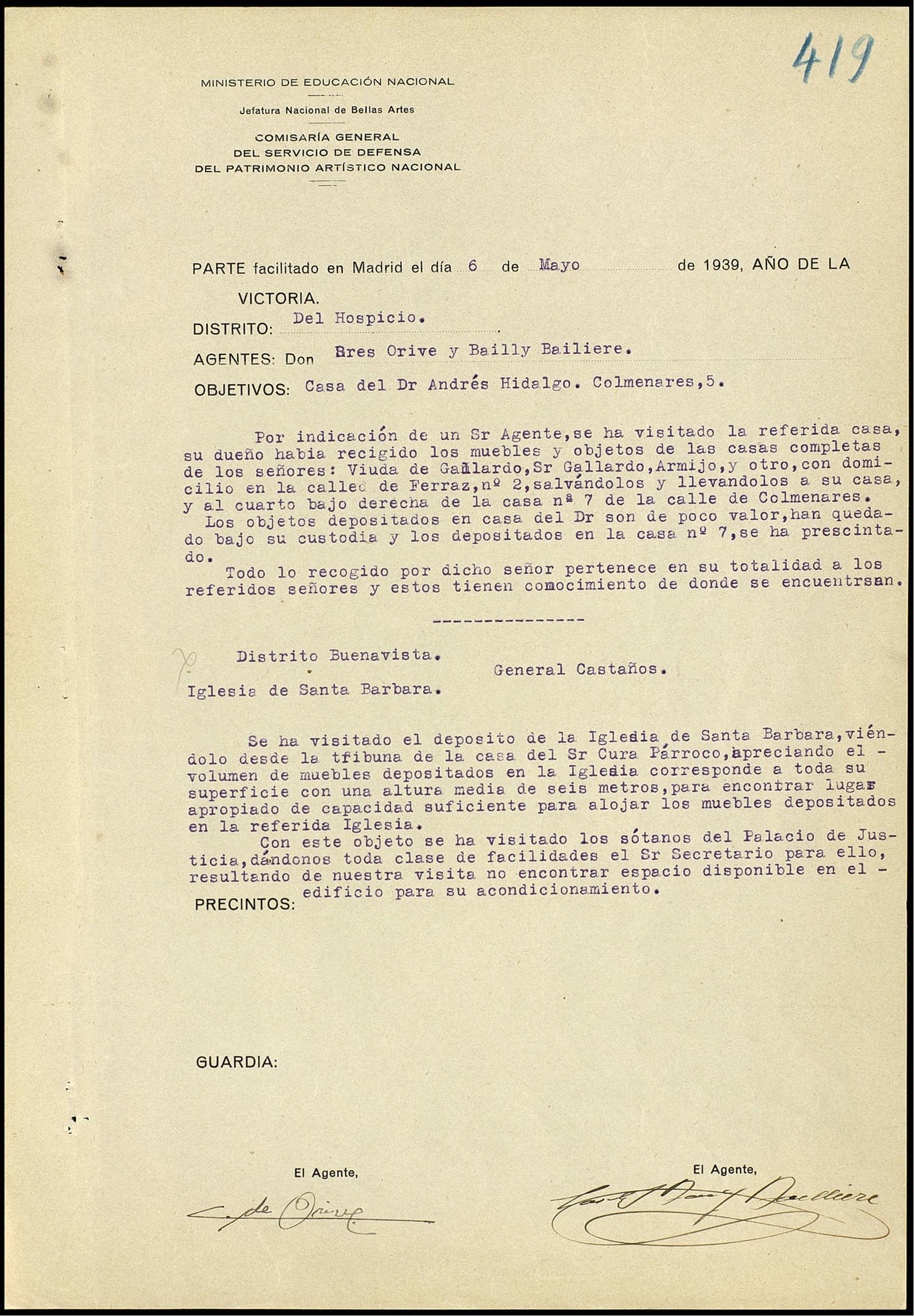 Visitas realizadas por los agentes a un domicilio particular y a la Iglesia de Santa Bárbara