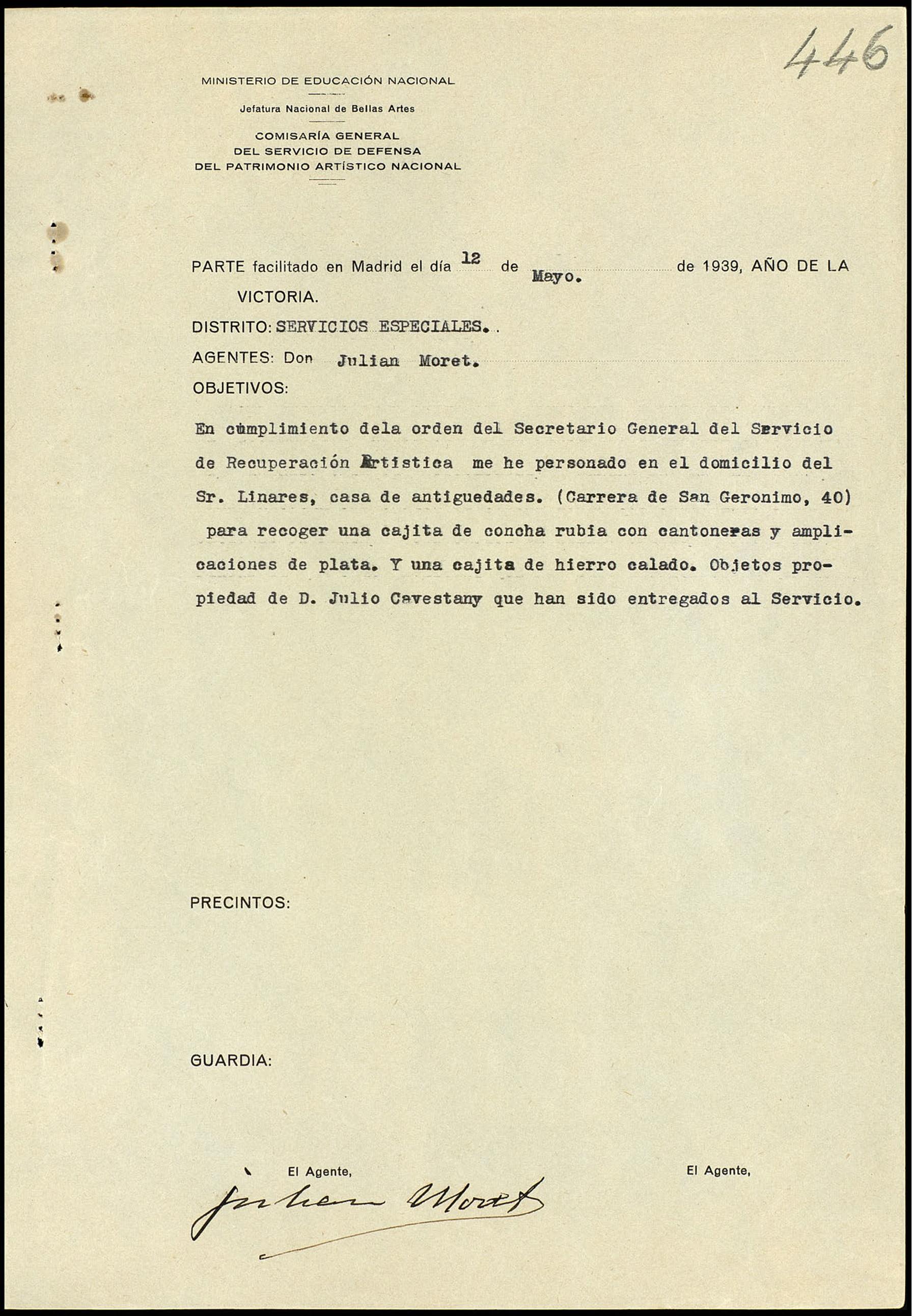 Visitas realizadas por los agentes a una casa de antigüedades para recoger unos objetos propiedad de Julio Cabestany