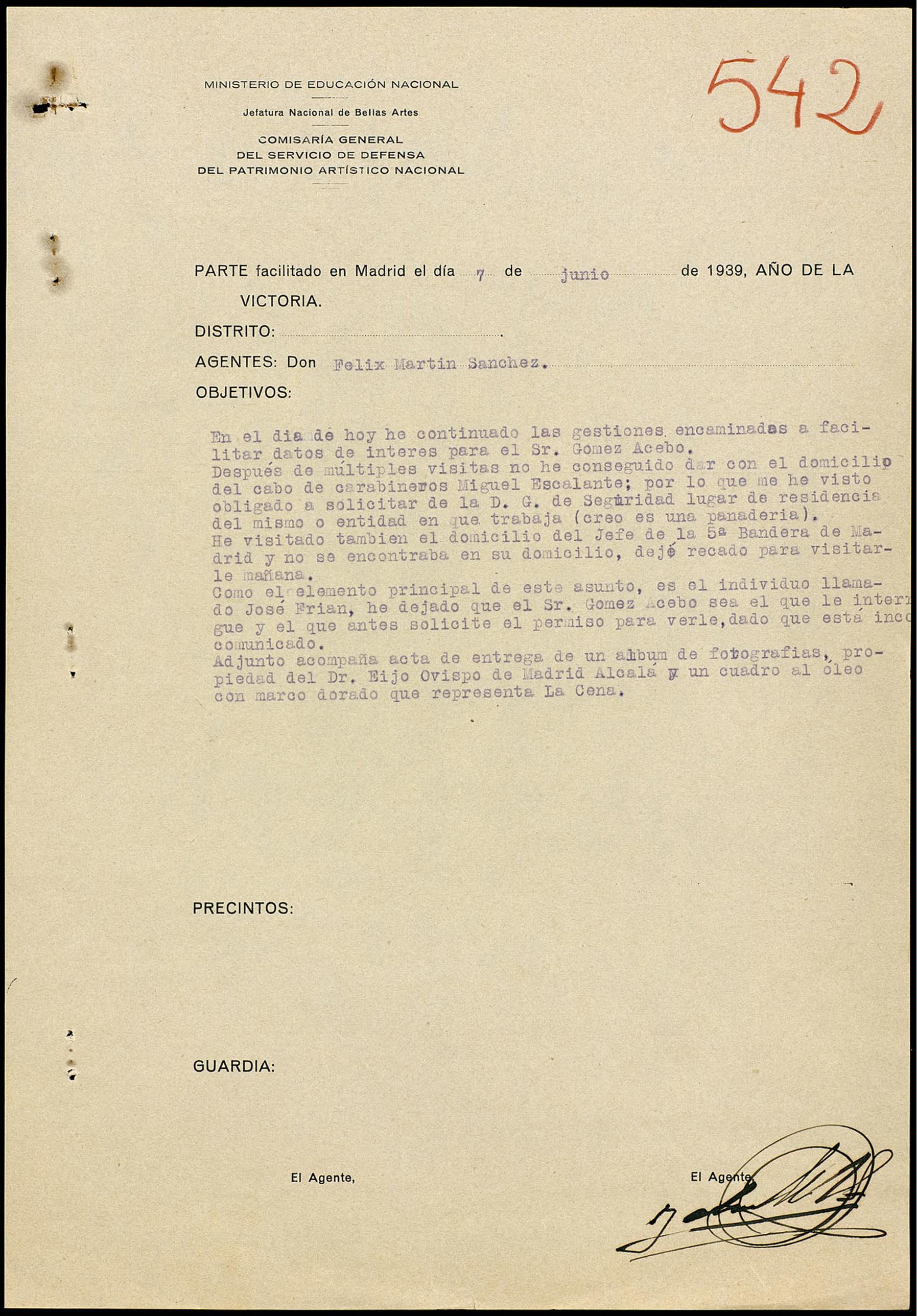 Visitas realizadas por los agentes a propósito de un álbum de fotografía y un cuadro del Obispo de Madrid-Alcalá