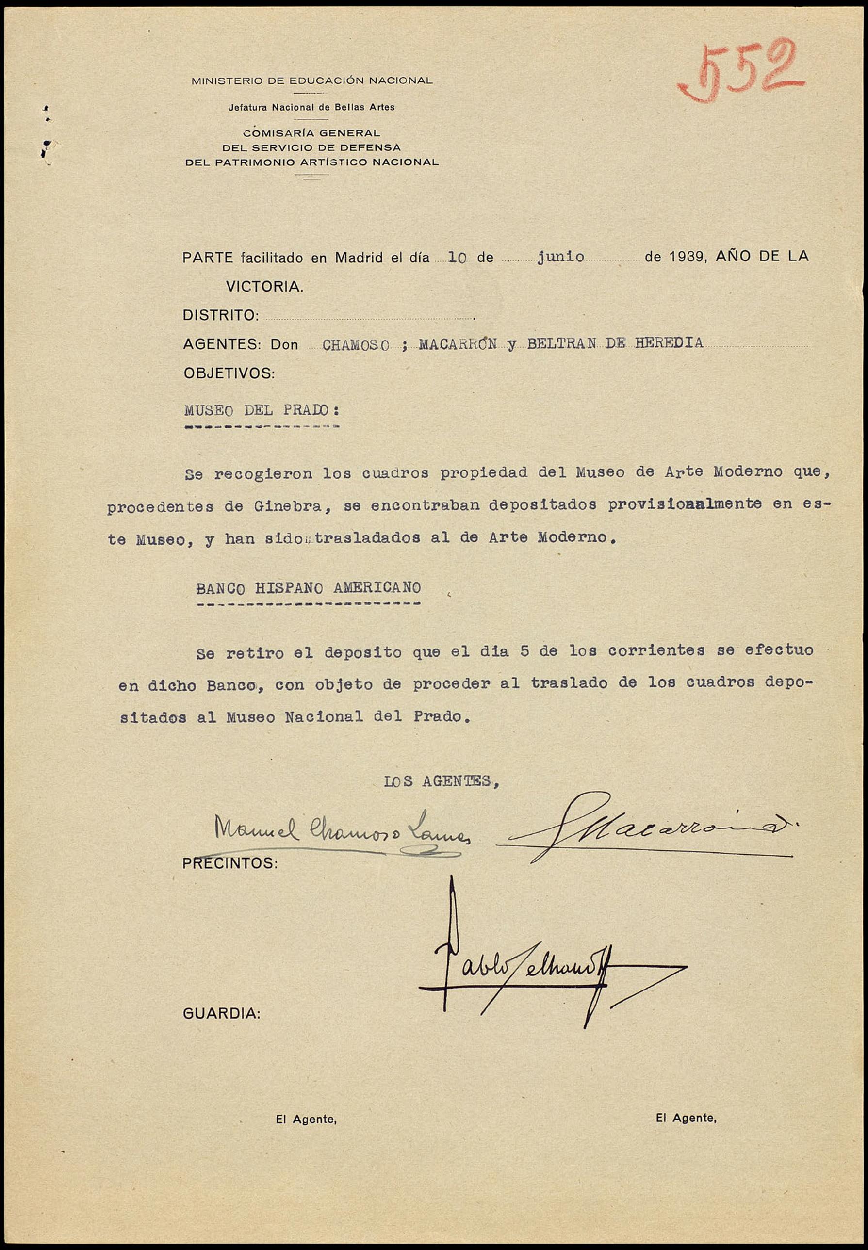 Visitas realizadas por los agentes para la retirada del Museo del Prado y del Banco Hispano Americano de cuadros procedentes de Ginebra