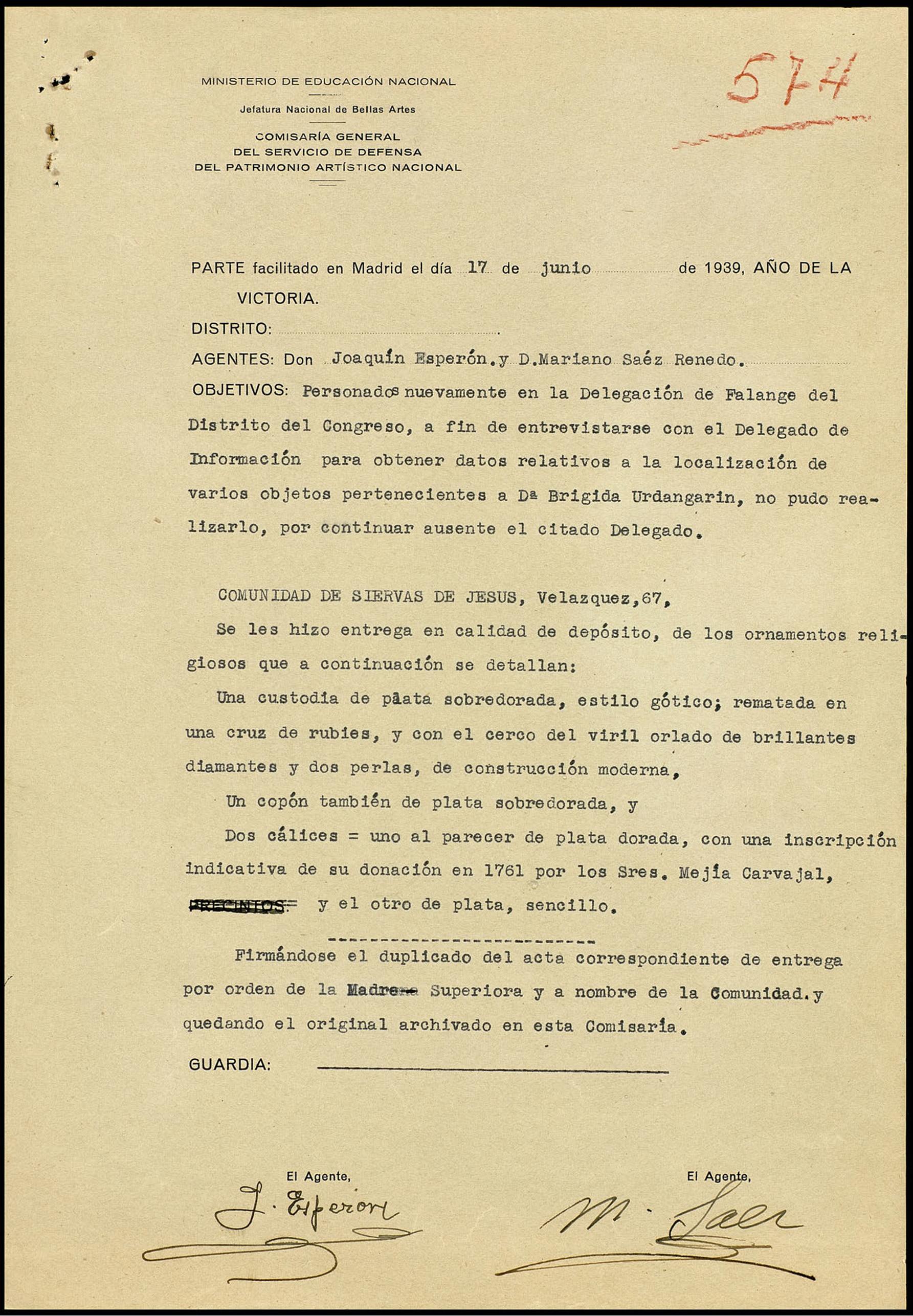 Visitas realizadas por los agentes sobre objetos de Brígida Urdangarín y la Comunidad de Siervas de Jesús