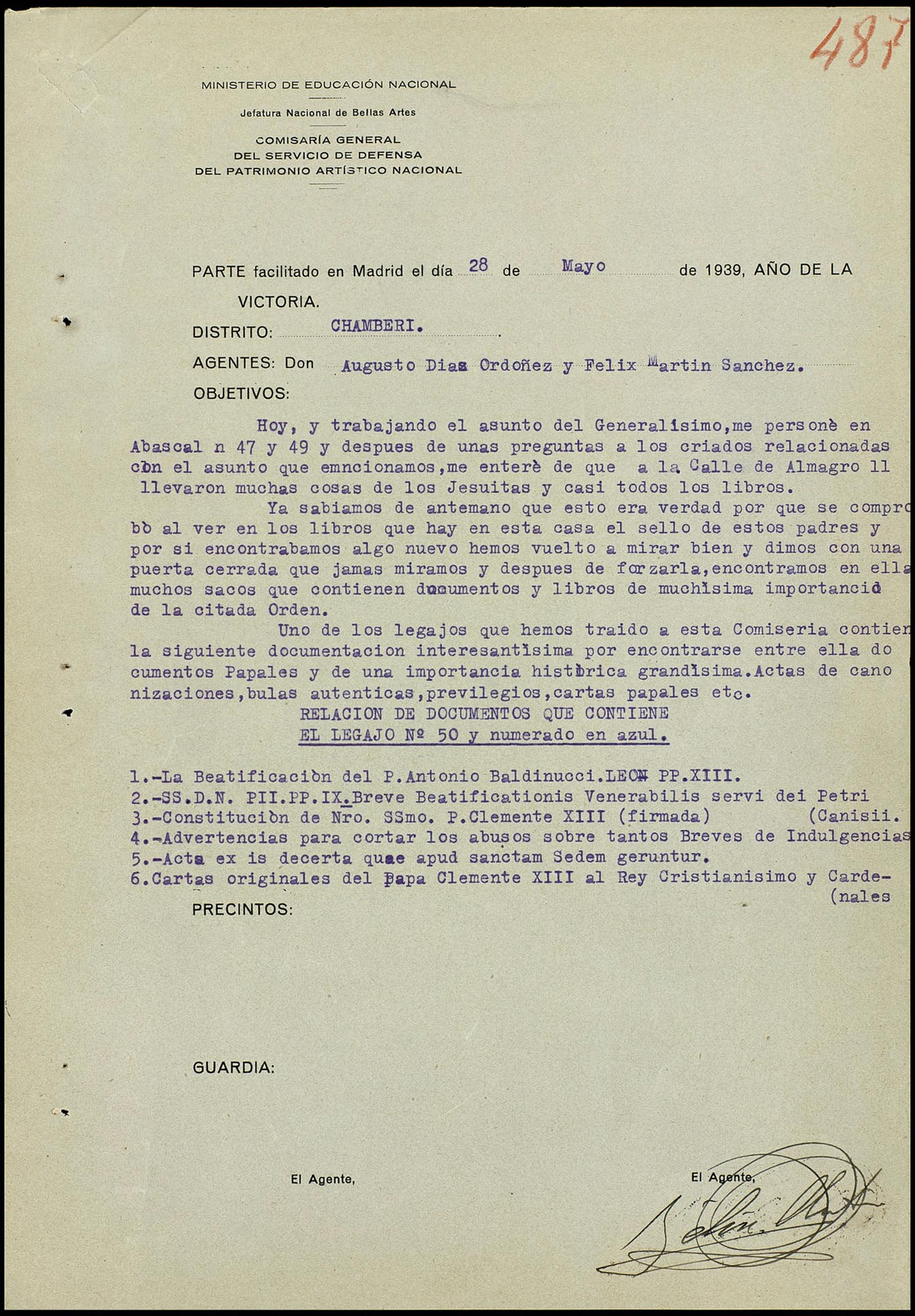 Visitas realizadas por los agentes a la calle Abascal investigando el asunto de Francisco Franco y a la calle Almagro donde encontraron sacos con libros y un legajo propiedad de los jesuitas
