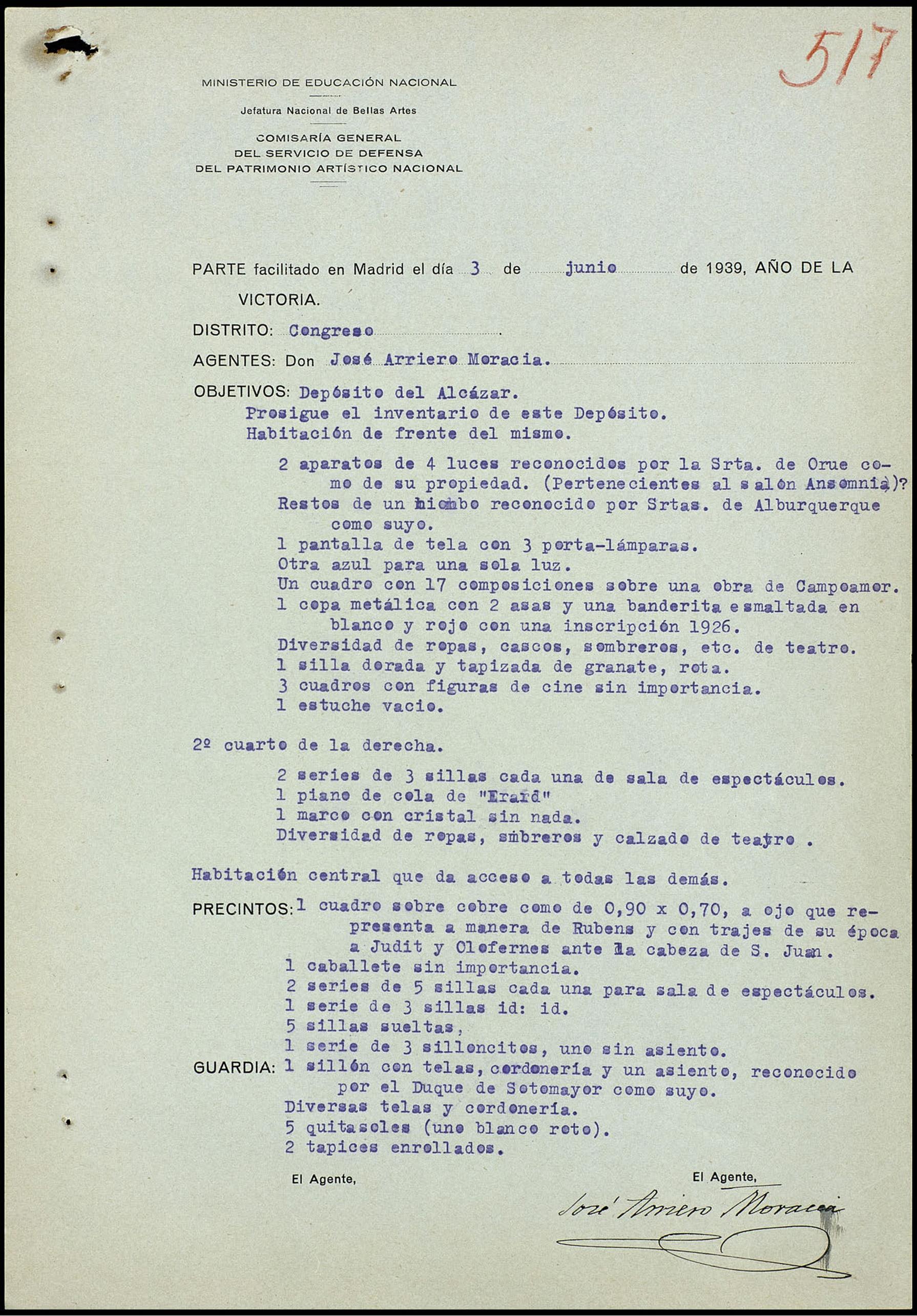 Visitas realizadas por los agentes al depósito del Teatro Alcázar para hacer inventario de su contenido