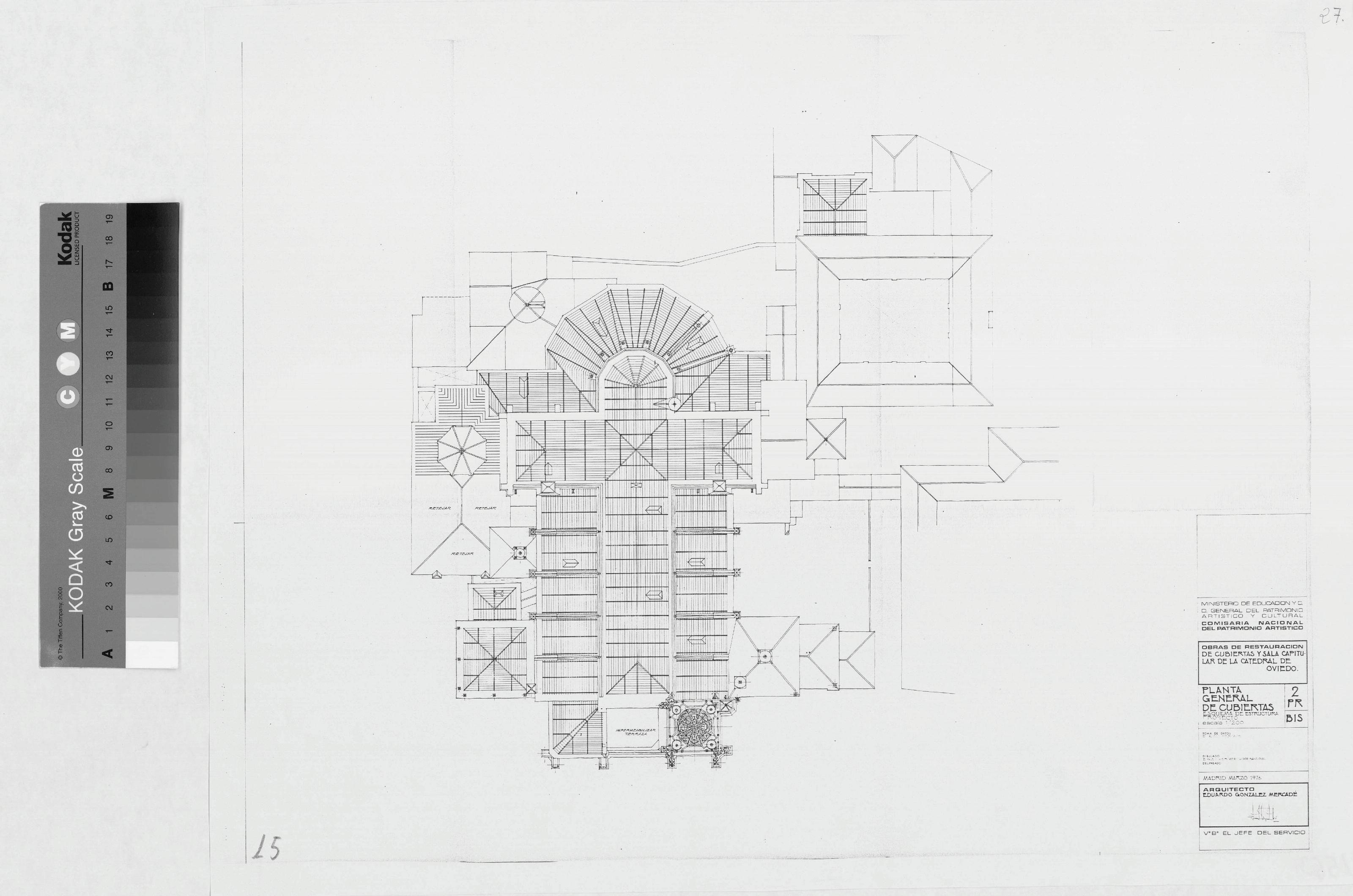 CATEDRAL DE OVIEDO: PLANTA GENERAL DE CUBIERTAS. ESQUEMA DE ESTRUCTURAS