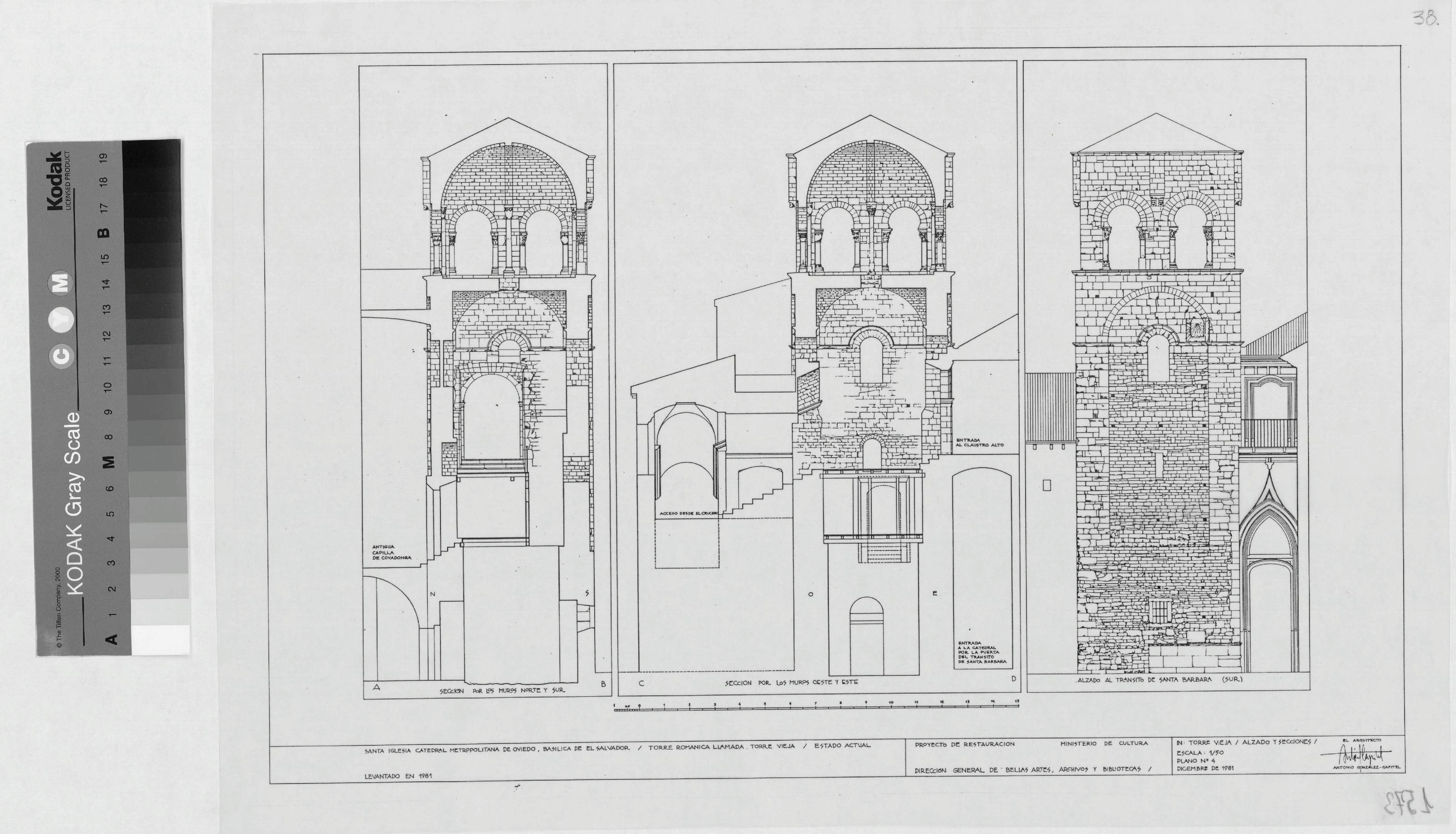 CATEDRAL DE OVIEDO: TORRE VIEJA: ALZADO Y SECCIONES