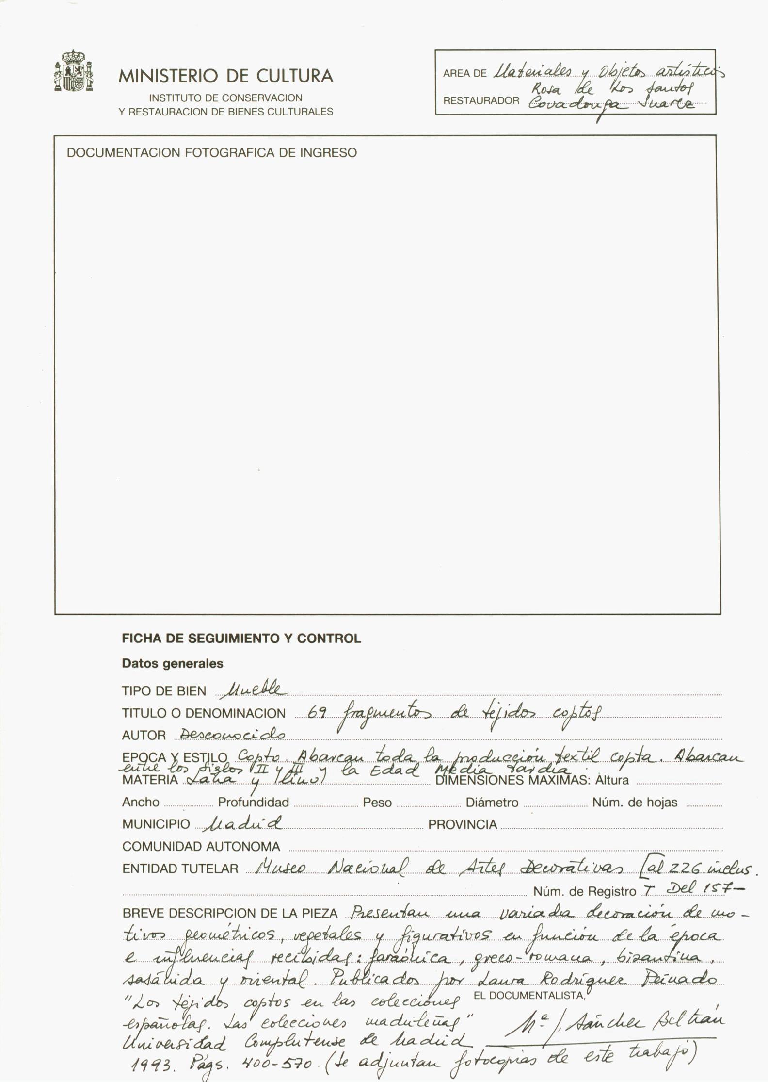 Restauración de sesenta y nueve tejidos coptos, procedentes del Museo Nacional de Artes Decorativas (Madrid)