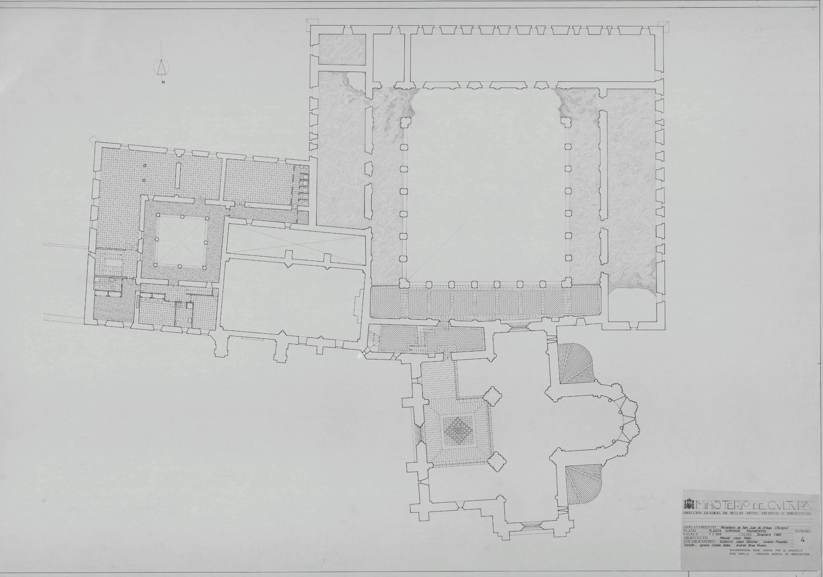 MONASTERIO DE SAN JUAN DE ORTEGA . BURGOS-: PLANTA SUPERIOR PAVIMENTOS. En esta planta aparece dibujada toda la pavimentacion a tratar, plano sin cotas, esta documentacion base esta cedida por el arquitecto Pons Sorolla.Planos realizados por personas contratadas por el INEM.