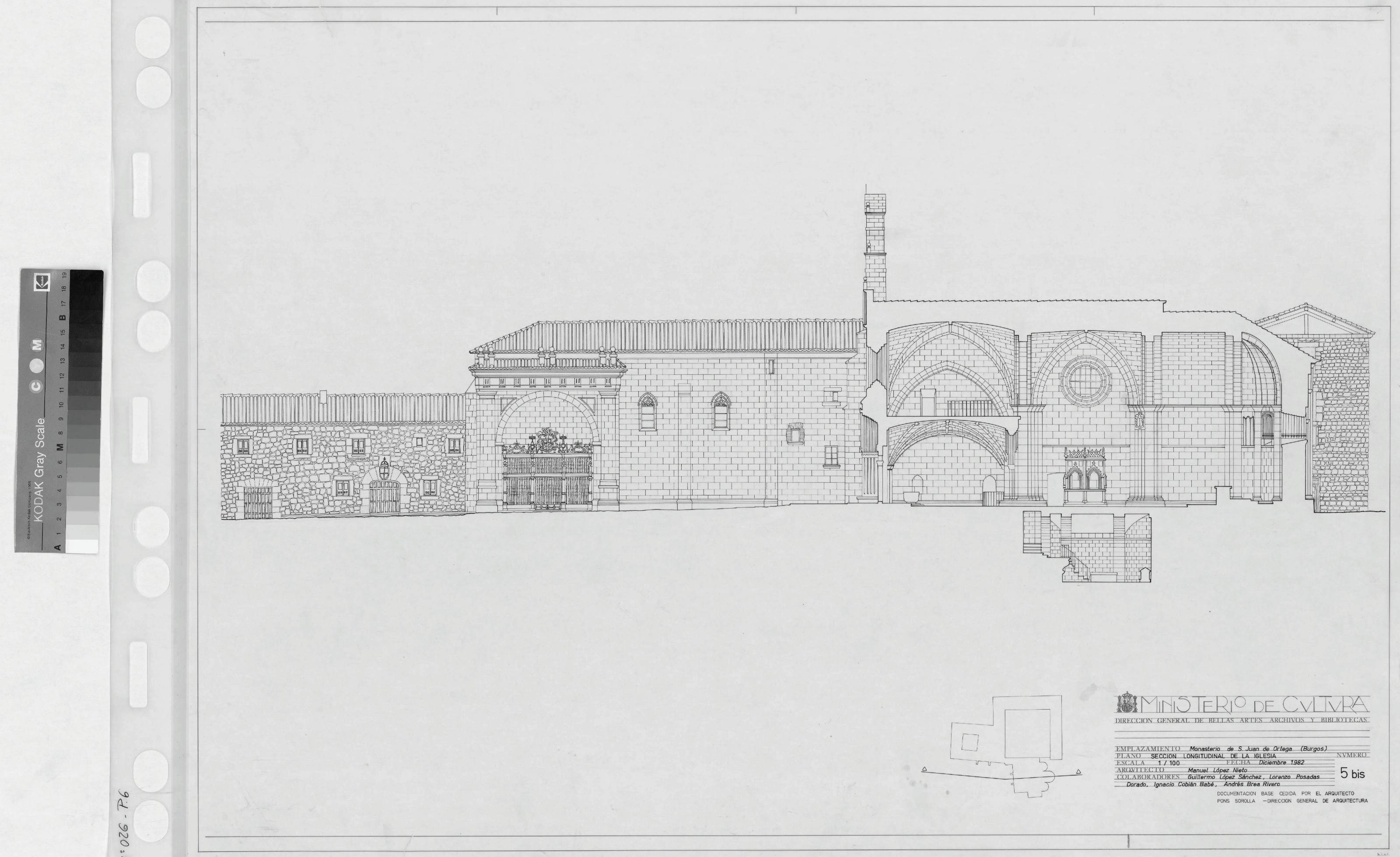MONASTERIO DE SAN JUAN DE ORTEGA . BURGOS-: SECCION LONGITUDINAL DE LA IGLESIA BIS. plano sin cotas, esta documentacion base esta cedida por el arquitecto Pons Sorolla.planos realizados por personas contratadas por el INEM.