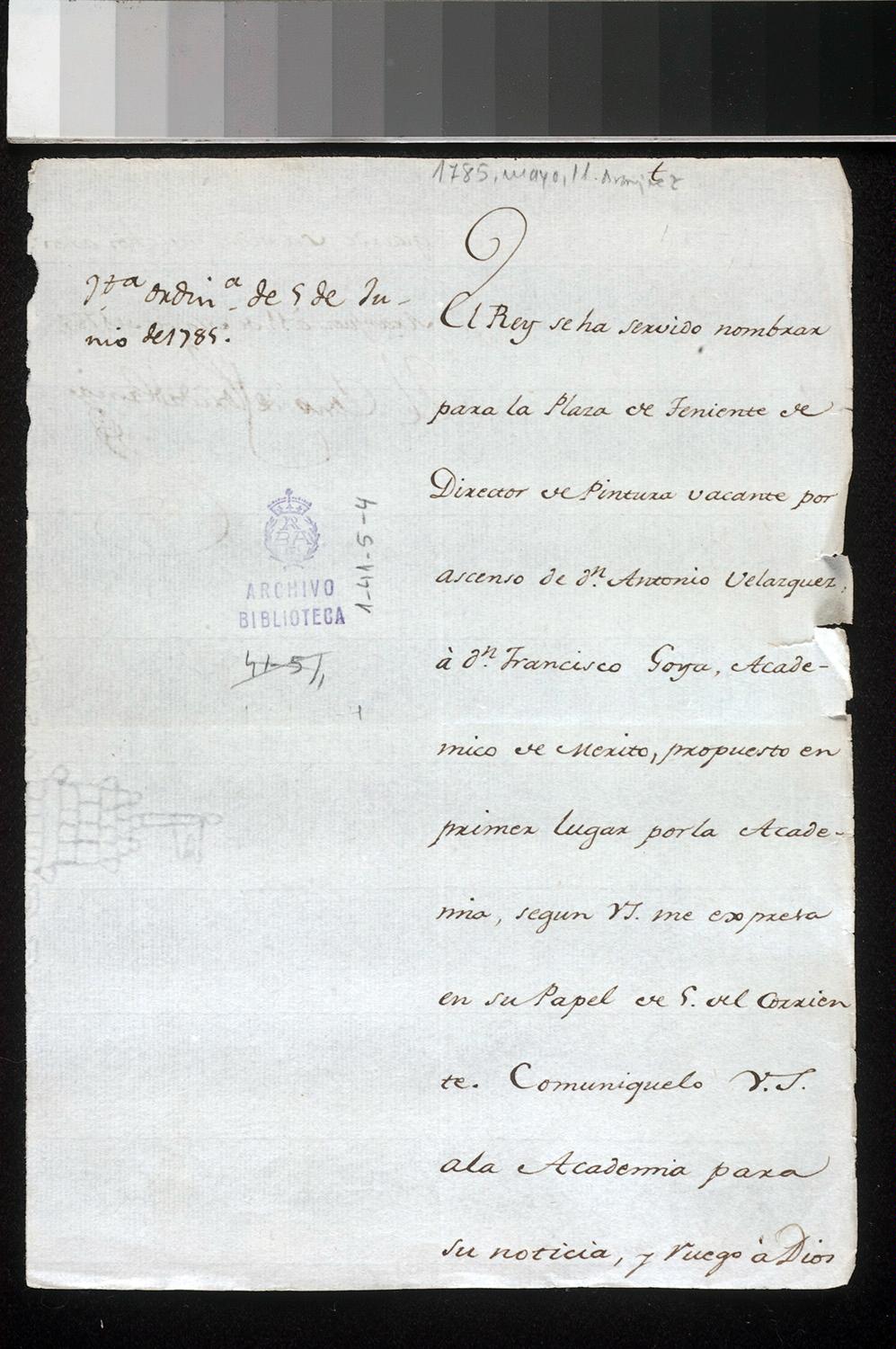 Fotografías de un documento de Francisco de Goya, procedente del Archivo-Biblioteca de la Real Academia de Bellas Artes de San Fernando (Madrid)