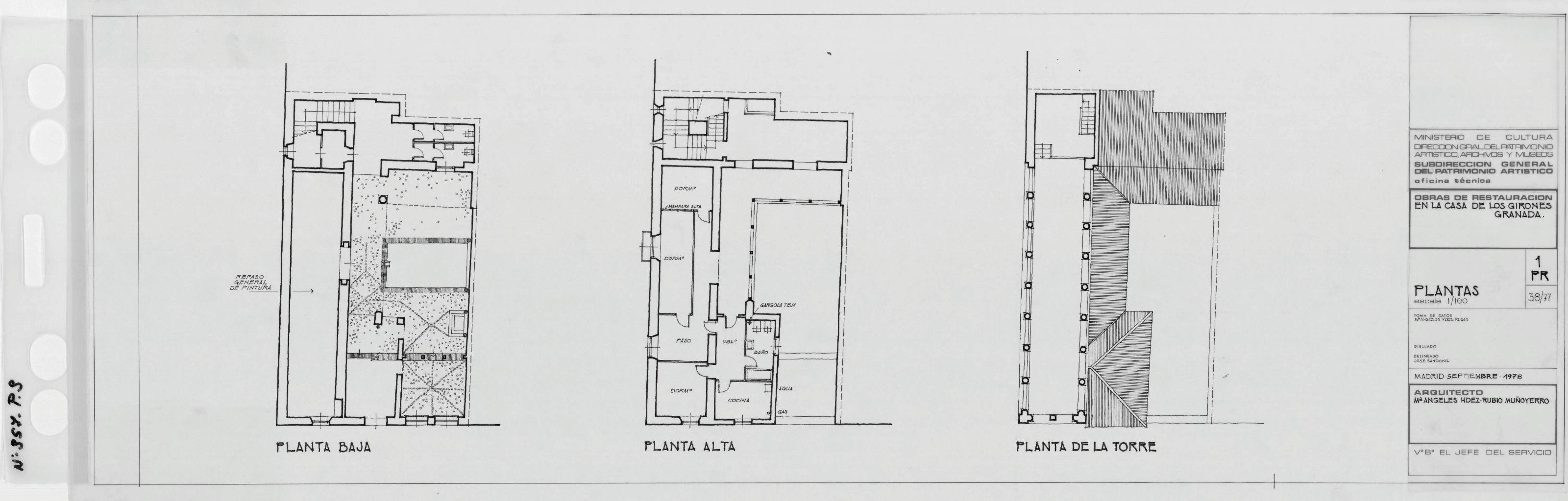 CASA DE LOS GIRONES - GRANADA-: PLANTA BAJA, PLANTA ALTA, PLANTA DE LA TORRE. Proyecto nos describe algunas reformas a realizar, plano sin acotar.