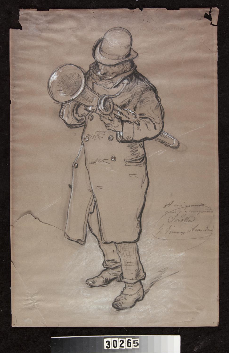 Restauración del dibujo "El trompetista", procedente del Museo Sorolla (Madrid)