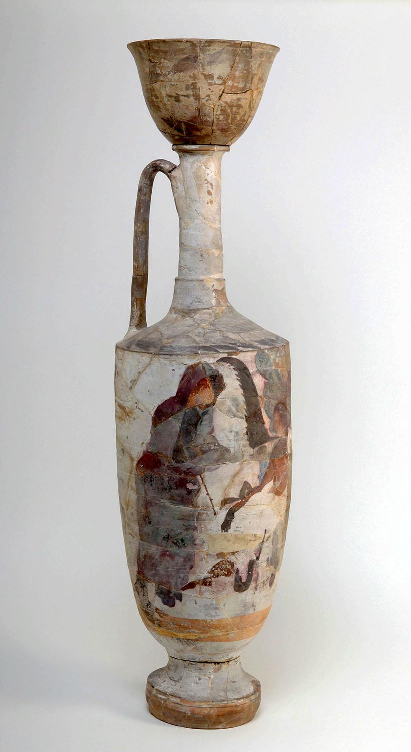 Restauración de una lécitos grande de fondo blanco, procedente del Museo Arqueológico Nacional (Madrid)