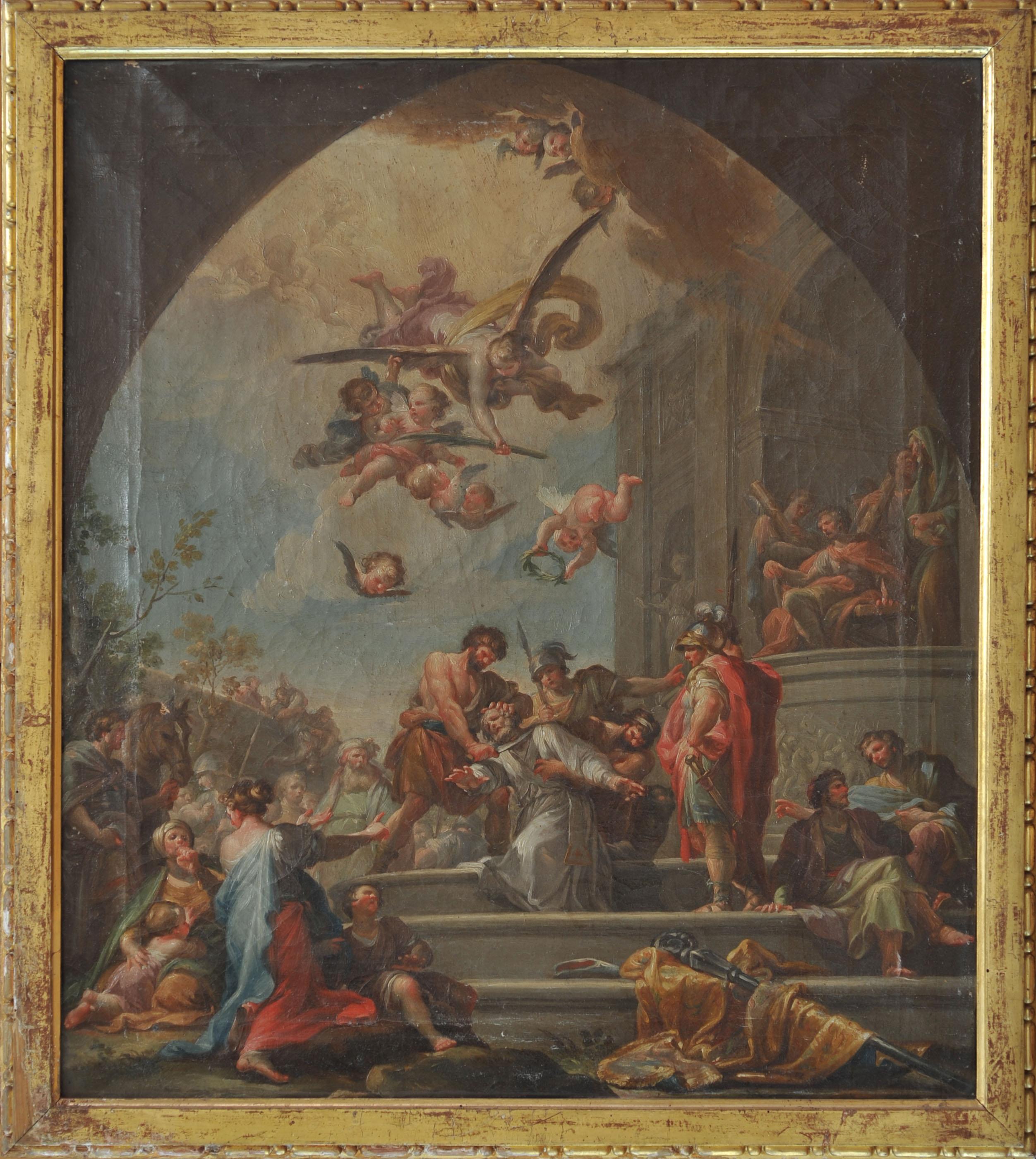 Fotografías del boceto de los frescos del siglo XVIII "Martirio de san Eugenio", de Francisco Bayeu, del claustro de la Catedral de Toledo