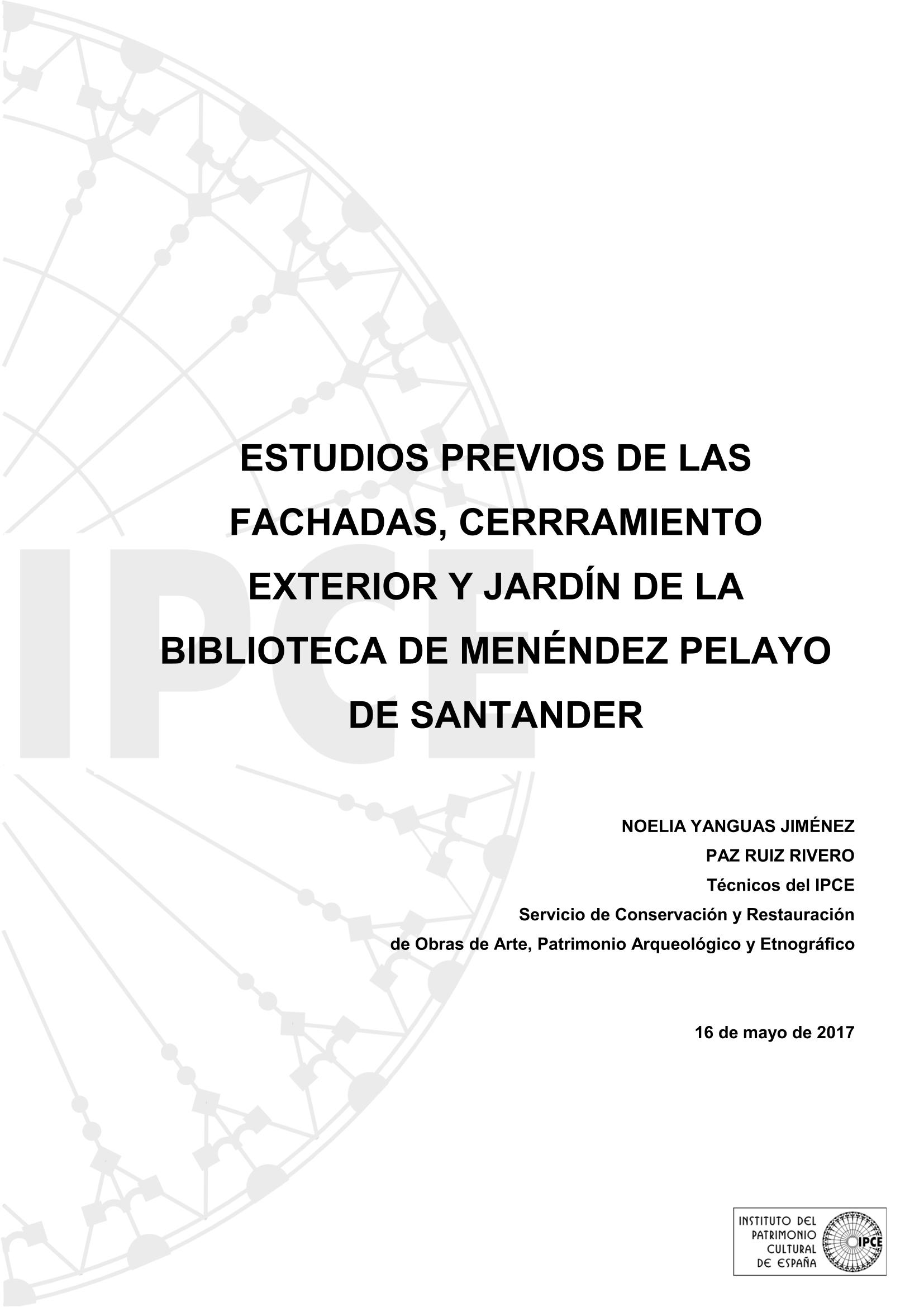 Estudios previos para la conservación-restauración de las fachadas, cerramiento y jardín de la Biblioteca Menéndez Pelayo de Santander