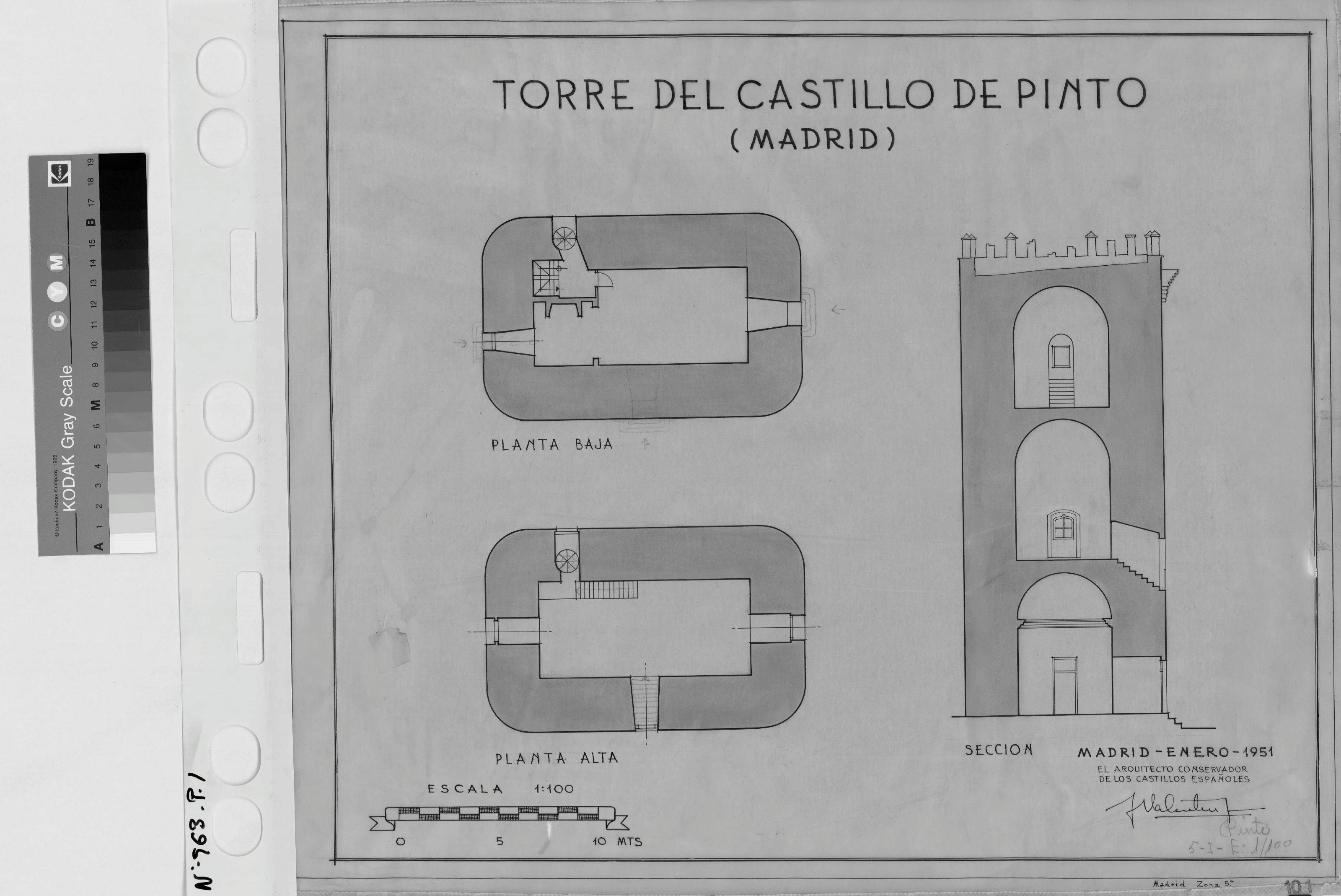 CASTILLO- TORRE DEL CASTILLO DE PINTO: PLANTA BAJA , ALTA Y SECCION.