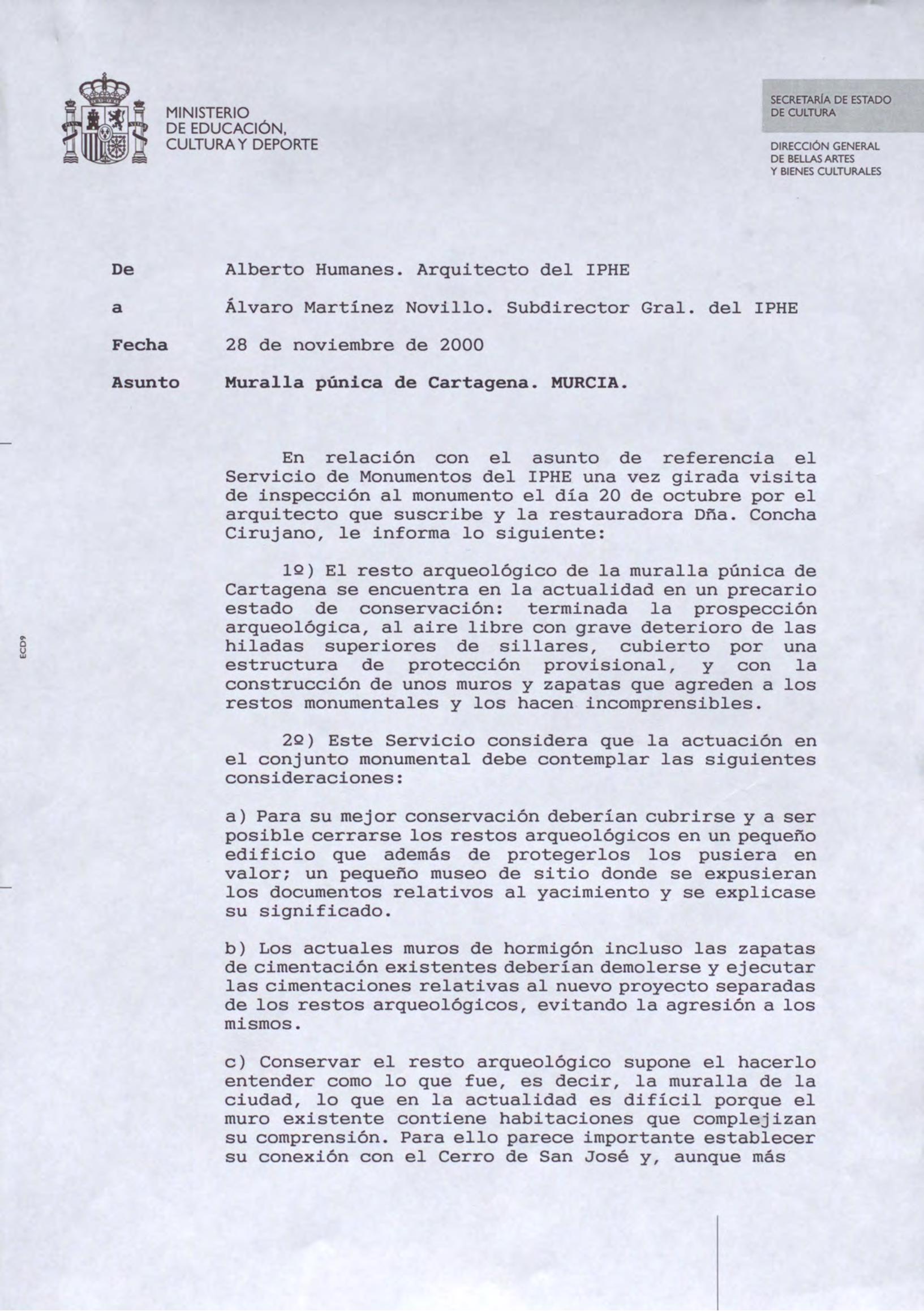Informe de visita para la conservación de la muralla púnica de Cartagena (Murcia)