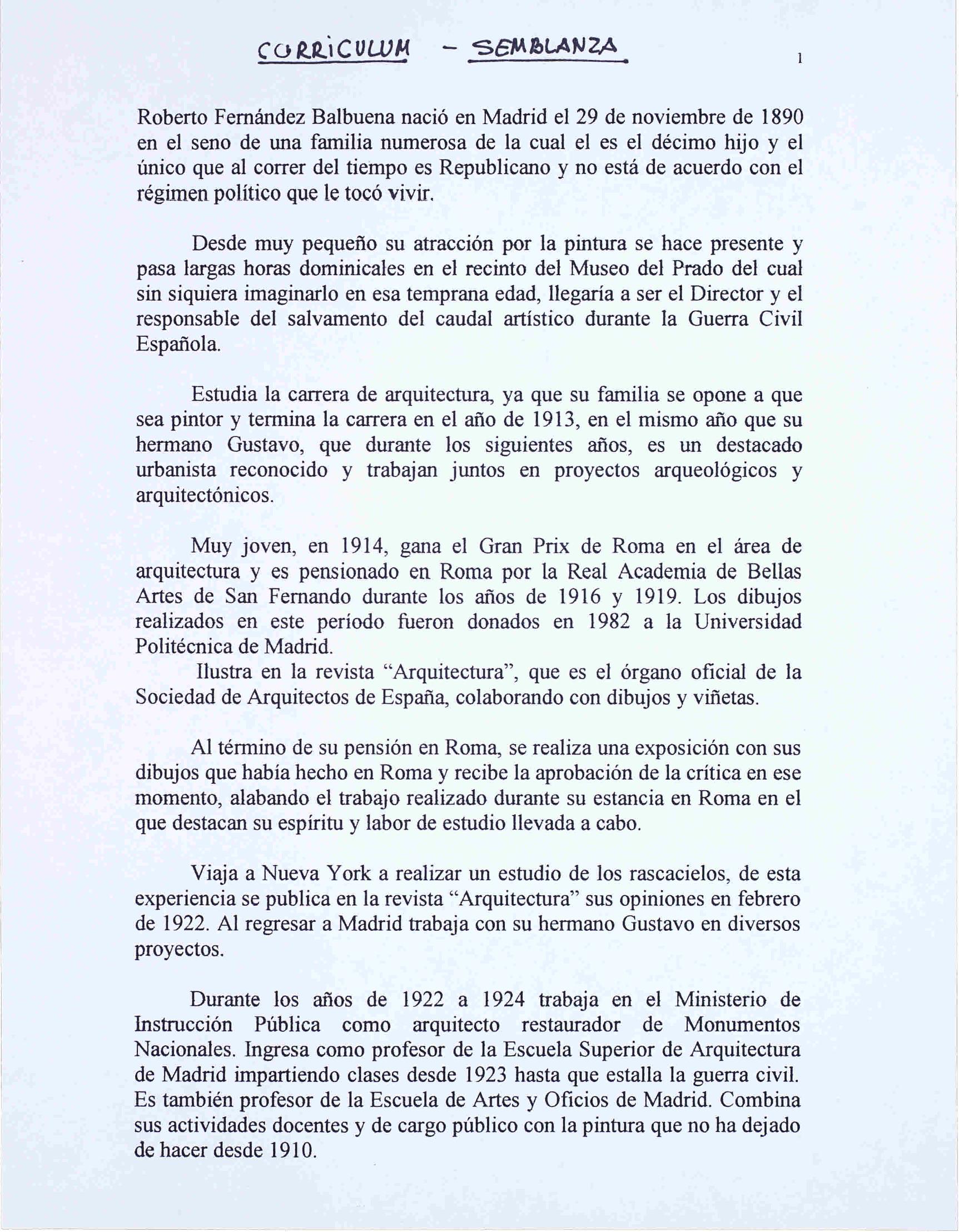 Currículum-Semblanza de Roberto Fernández Balbuena firmado por su hija, Guadalupe Fernández Gascón.