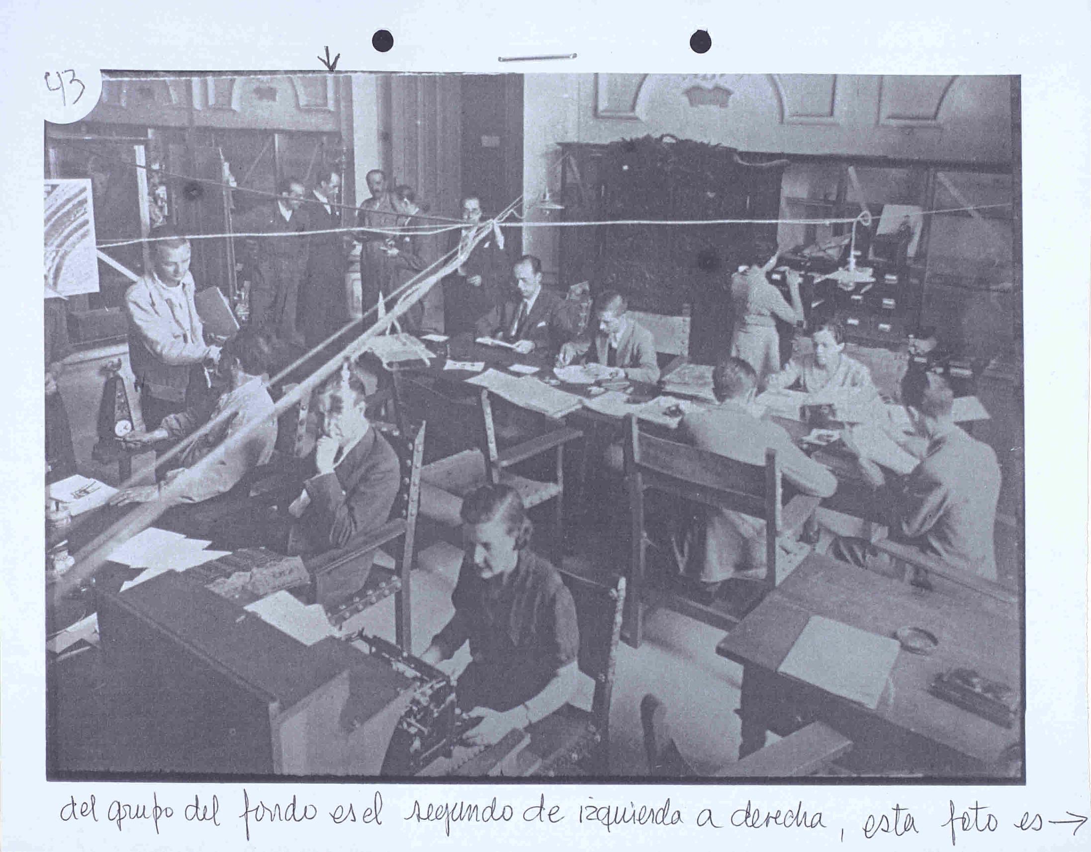 Reproducción fotográfica de la fotografía del personal de la junta Delegada del Tesoro Artístico de Madrid, instalada en el Museo Arqueológico Nacional