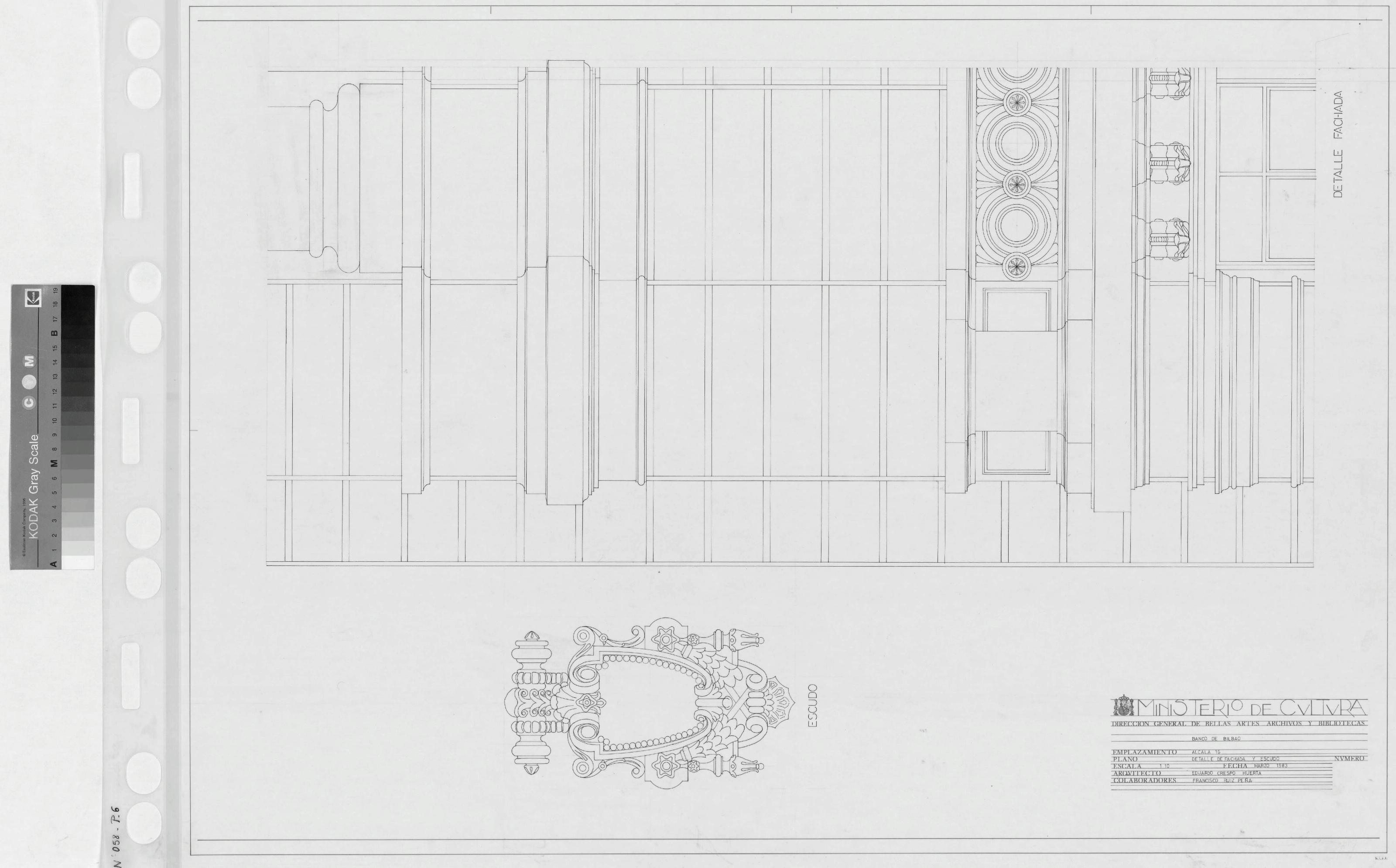 BANCO DE BILBAO: PLANO DE DETALLE DE FACHADA Y ESCUDO. Plano dibujado con mucho detalle, plano sin cotas.