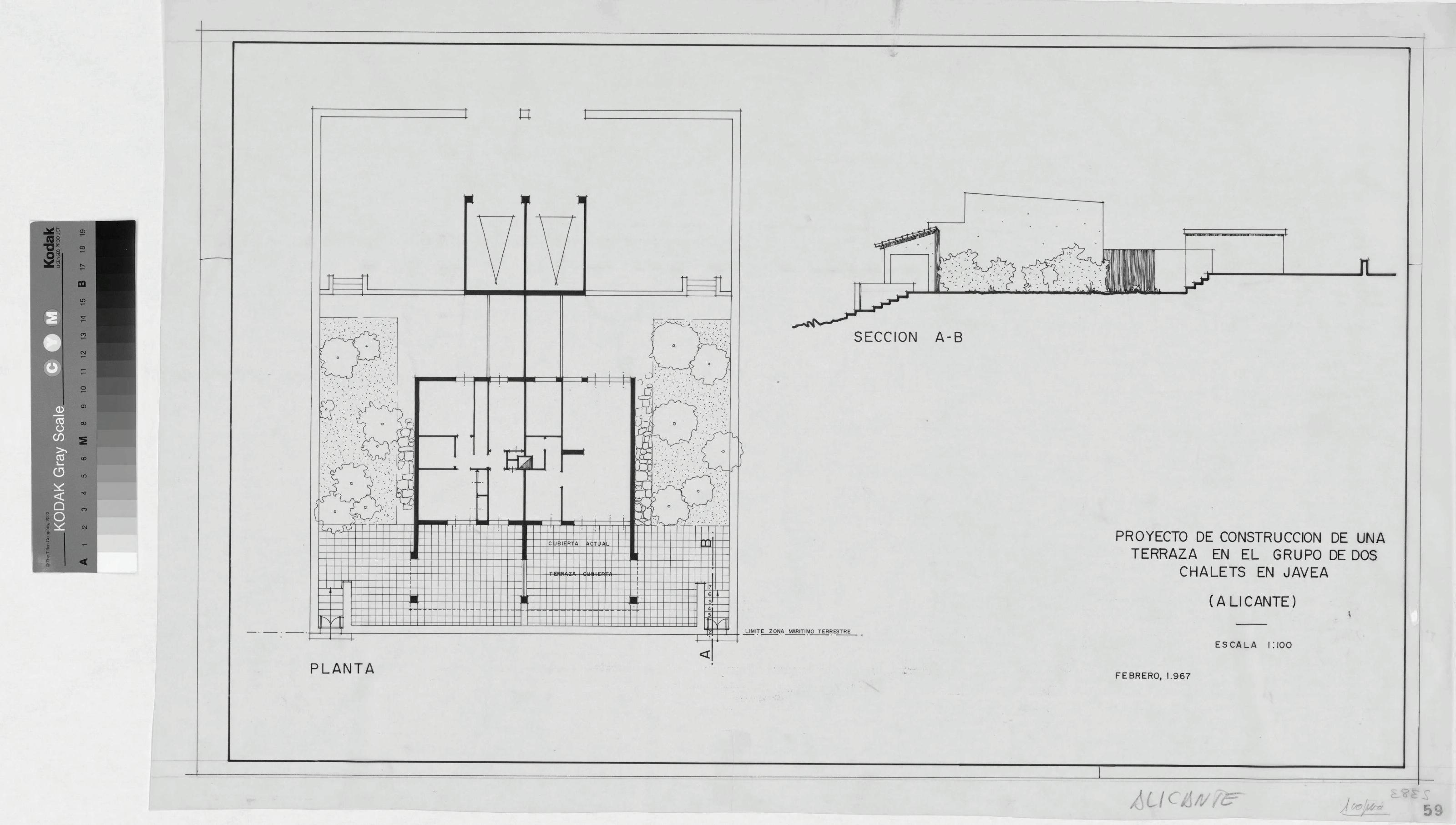 TERRAZA EN UN GRUPO DE CHALETS: PLANTA, SECCION A-B