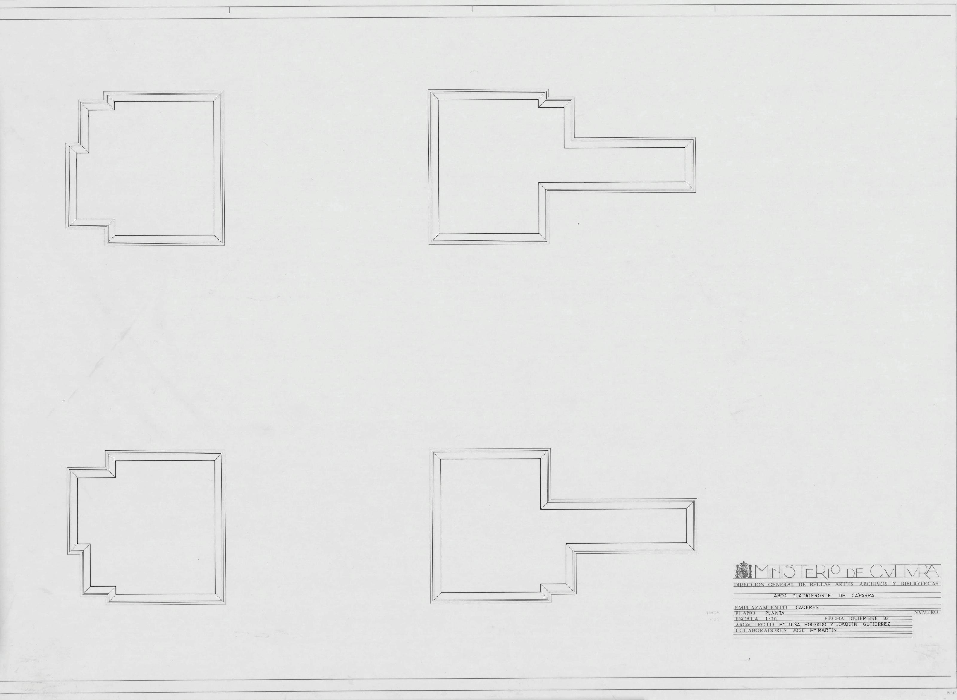 ARCO CUADRIFRONTE DE CAPARRA: PLANTAS. PLANO SIN DENOMINACION DE USUS NI COTAS. PLANO REALIZADO POR PERSONAL CONTRATADO POR EL INEM.