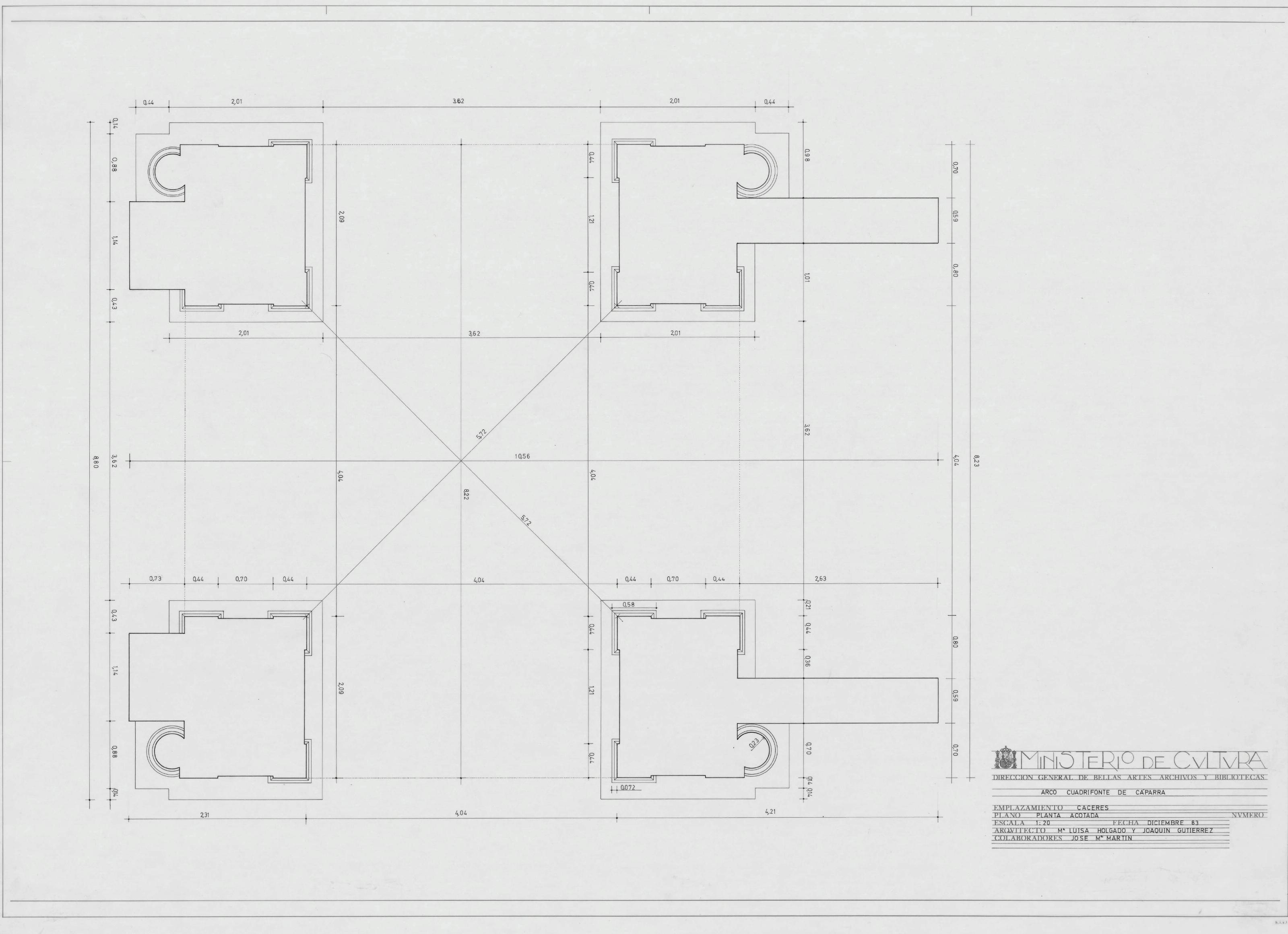 ARCO CUADRIFRONTE DE CAPARRA: PLANTAS ACOTADAS. PLANO SIN DENOMINACION DE USOS CON COTAS. PLANO REALIZADO POR PERSONAL CONTRATADO POR EL INEM.