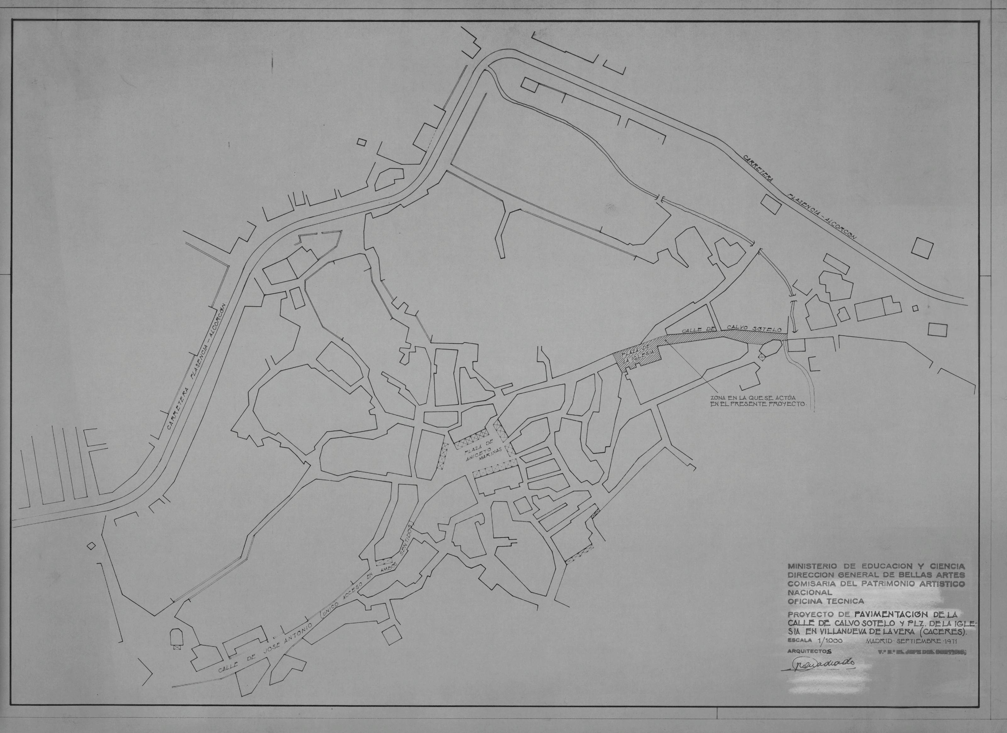 PAVIMENTACION DE LA CALLE CALVO SOTELO Y PLAZA DE LA IGLESIA EN VILLANUEVA DE LA VERA-Cáceres-: EMPLAZAMIENTO CON LOCALIZACION DEL TRAMO AFECTADO POR LAS OBRAS