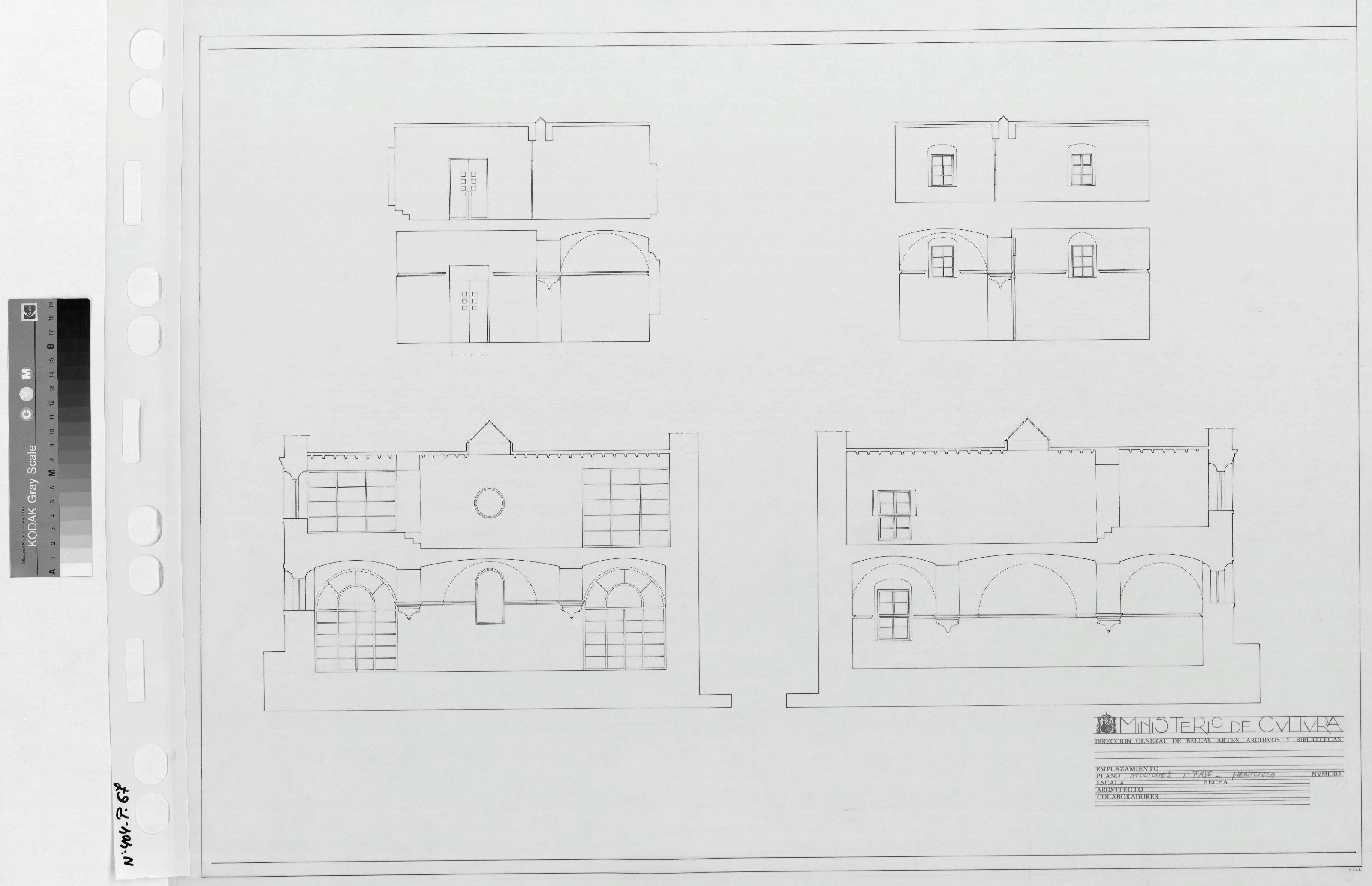 ASAMBLEA DE EXTREMADURA PROYECTO DE REHABILITACIÓN DEL ANTIGUO HOSPITAL DE S. JUAN DE DIOS PARA SEDE DE LA ASAMBLEA: Pone en el sello a lápiz "SECCIONES 1ª FASE HEMICICLO" Dibujo de 4 Secciones sin especificar nombre. Sin cotas ni notas Sin Firmar