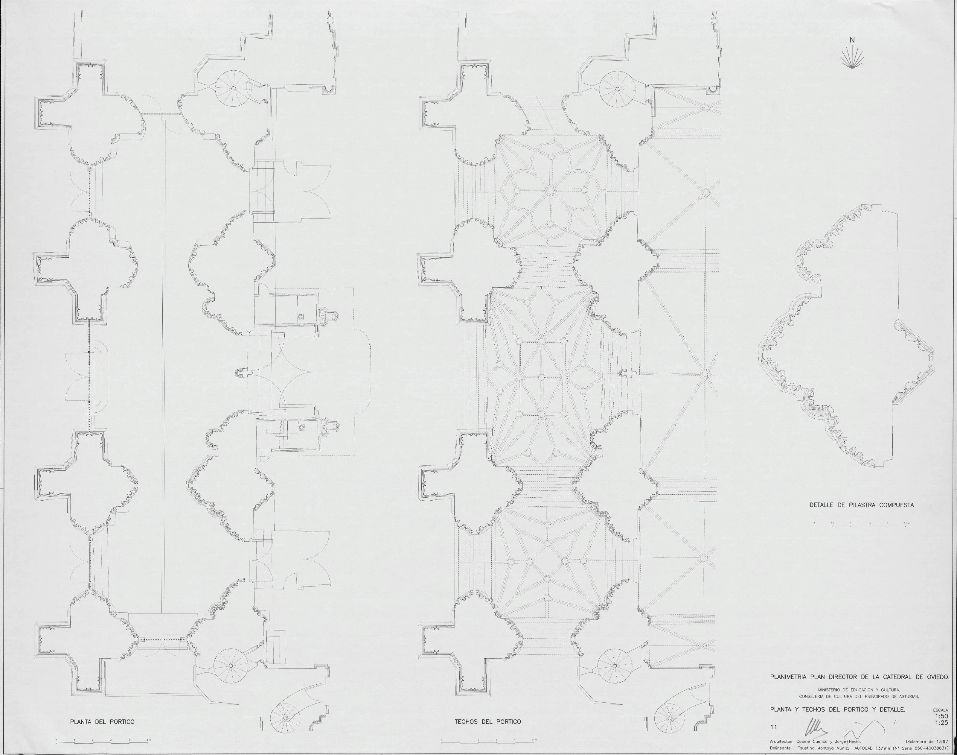 CATEDRAL DE OVIEDO: PLANTA Y TECHOS DEL PORTICO Y DETALLES