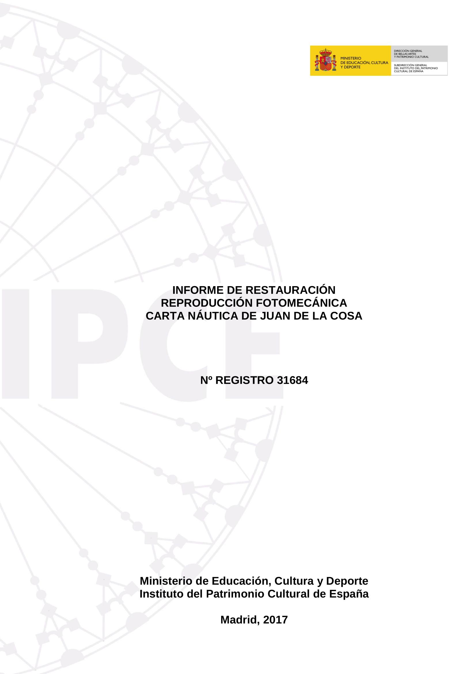 Restauración de una reproducción fotomecánica de la carta de Juan de la Cosa, 1892, procedente de la Fiscalía General del Estado, Ministerio de Justicia (Madrid)