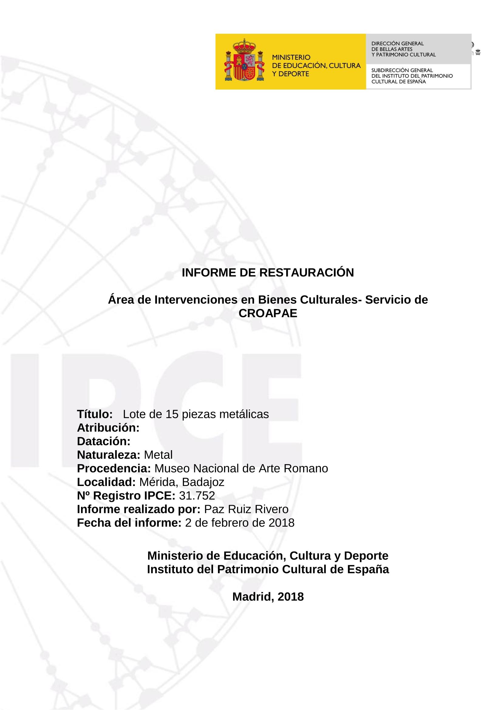 Restauración del lote de quince piezas metálicas procedente de la excavación de ampliación del Museo Nacional de Arte Romano de Mérida