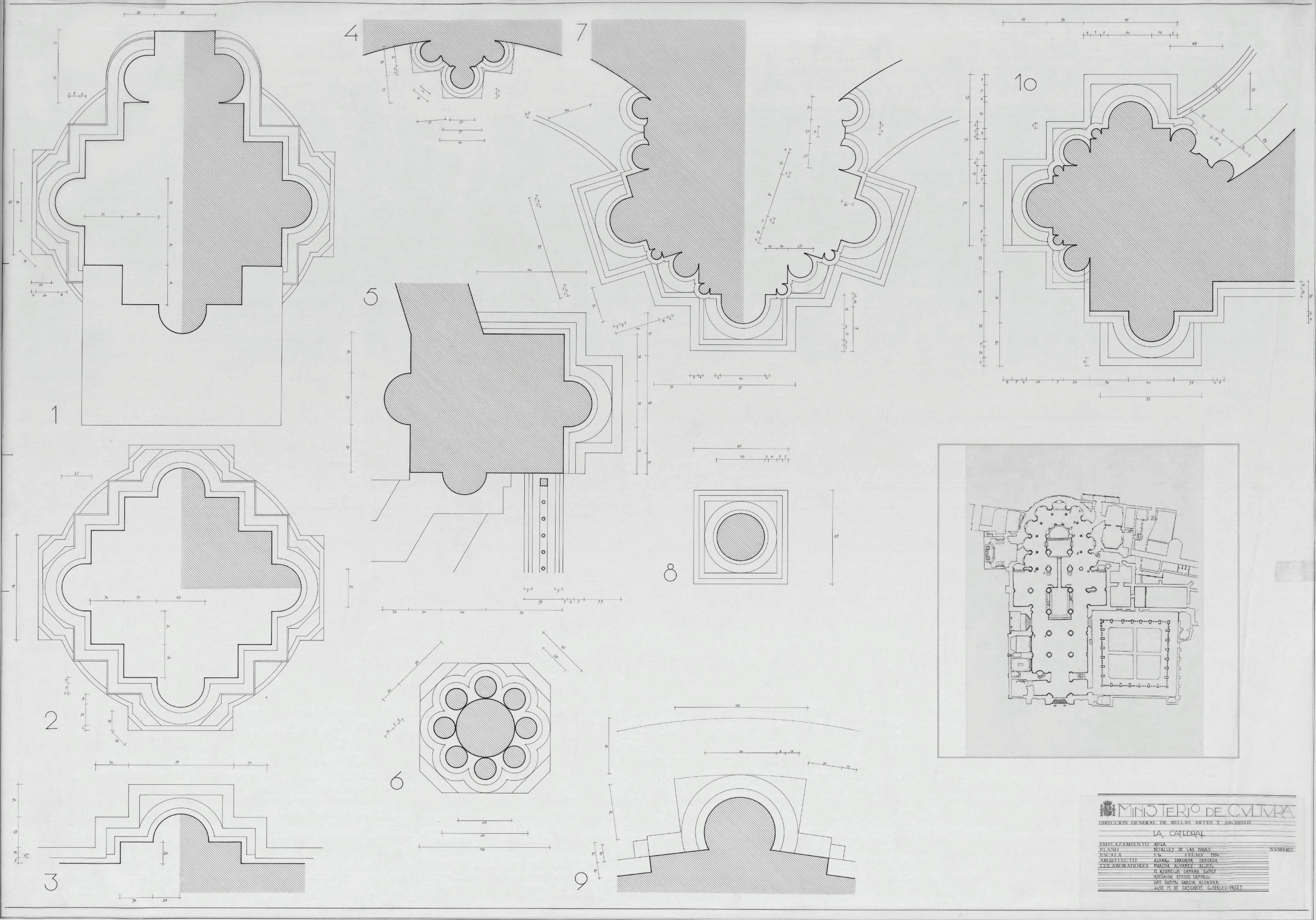LA CATEDRAL DE AVILA.: PLANO, DETALLES DE LAS NAVES, DIBUJOS ACOTADOS Y RALLADOS.