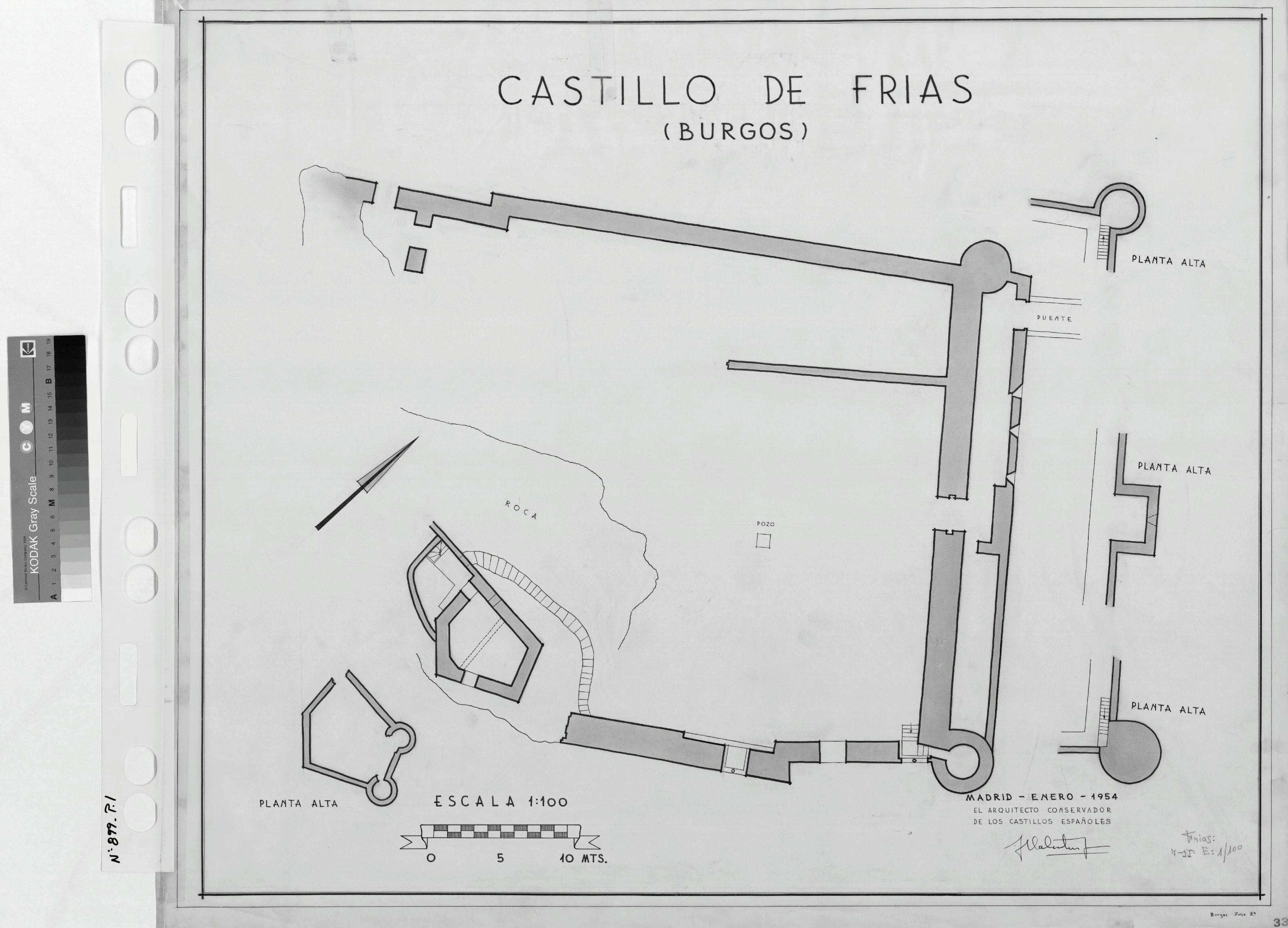 CASTILLO DE FRIAS - BURGOS-: PLANTA GENERAL Y PLANTA ALTA.. Plantas , donde se ven marcados los muros sombreados, con los huecos de ventanas, puertas y escaleras. dibujo sin cotas.