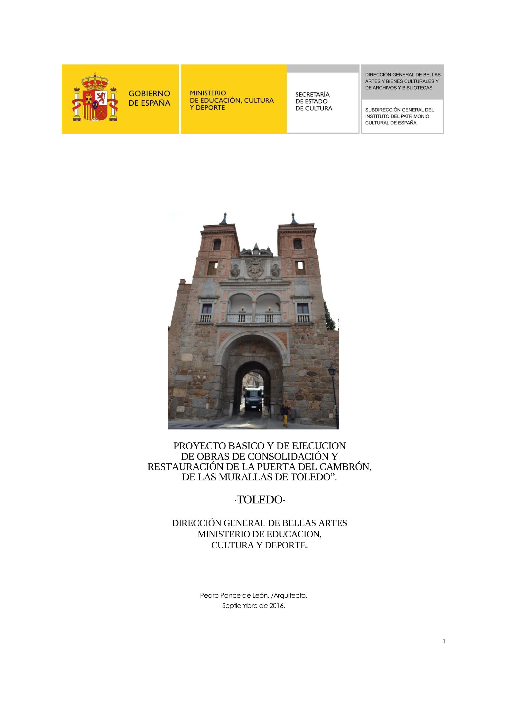 Proyecto de conservación y restauración de la puerta del Cambrón de las Murallas de Toledo (Toledo).