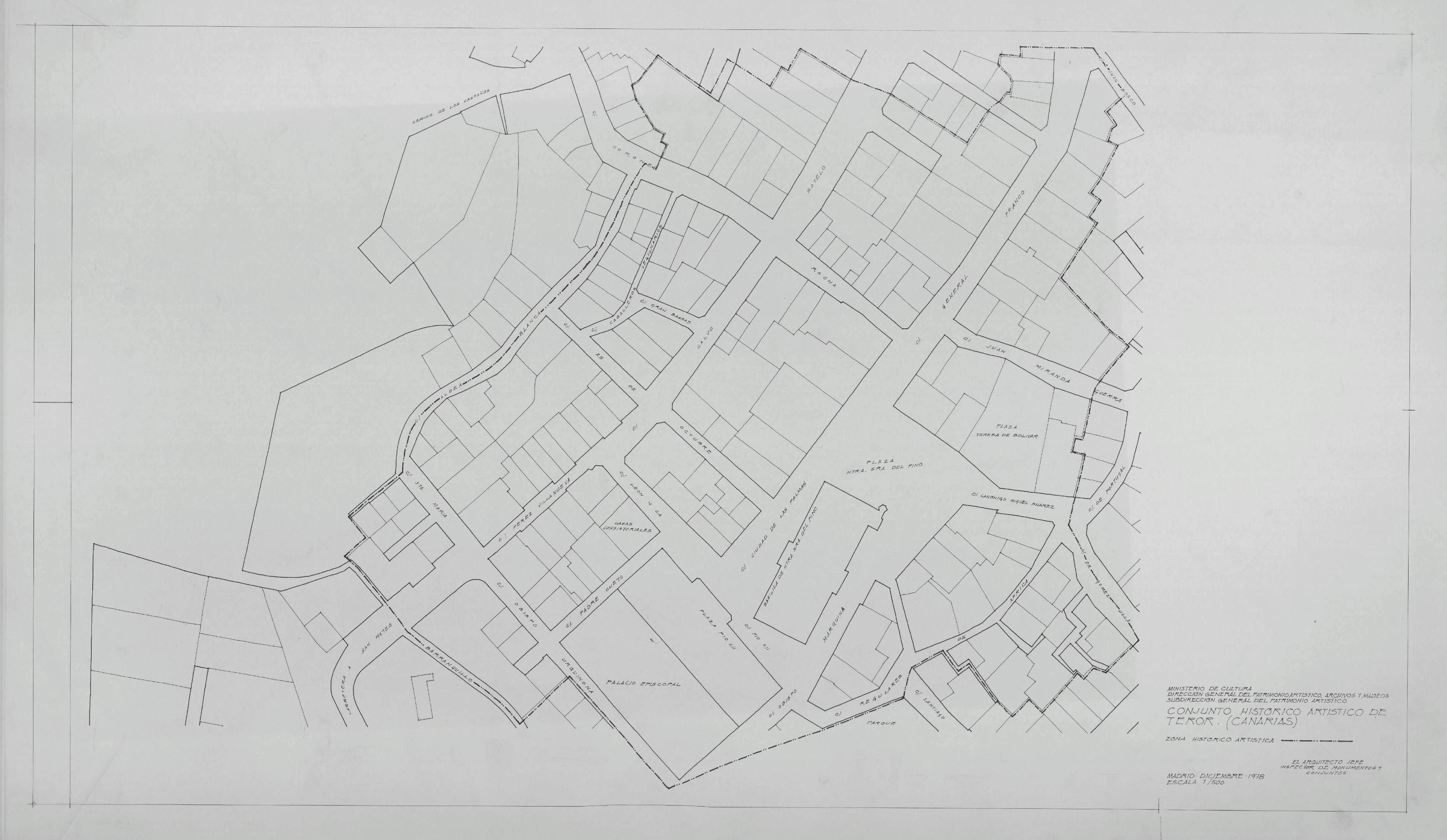 TEROR: PLANTA GENERAL DEL CONJUNTO HISTORICO ARTISTICO CON DELIMITACION DE LA ZONA AFECTADA