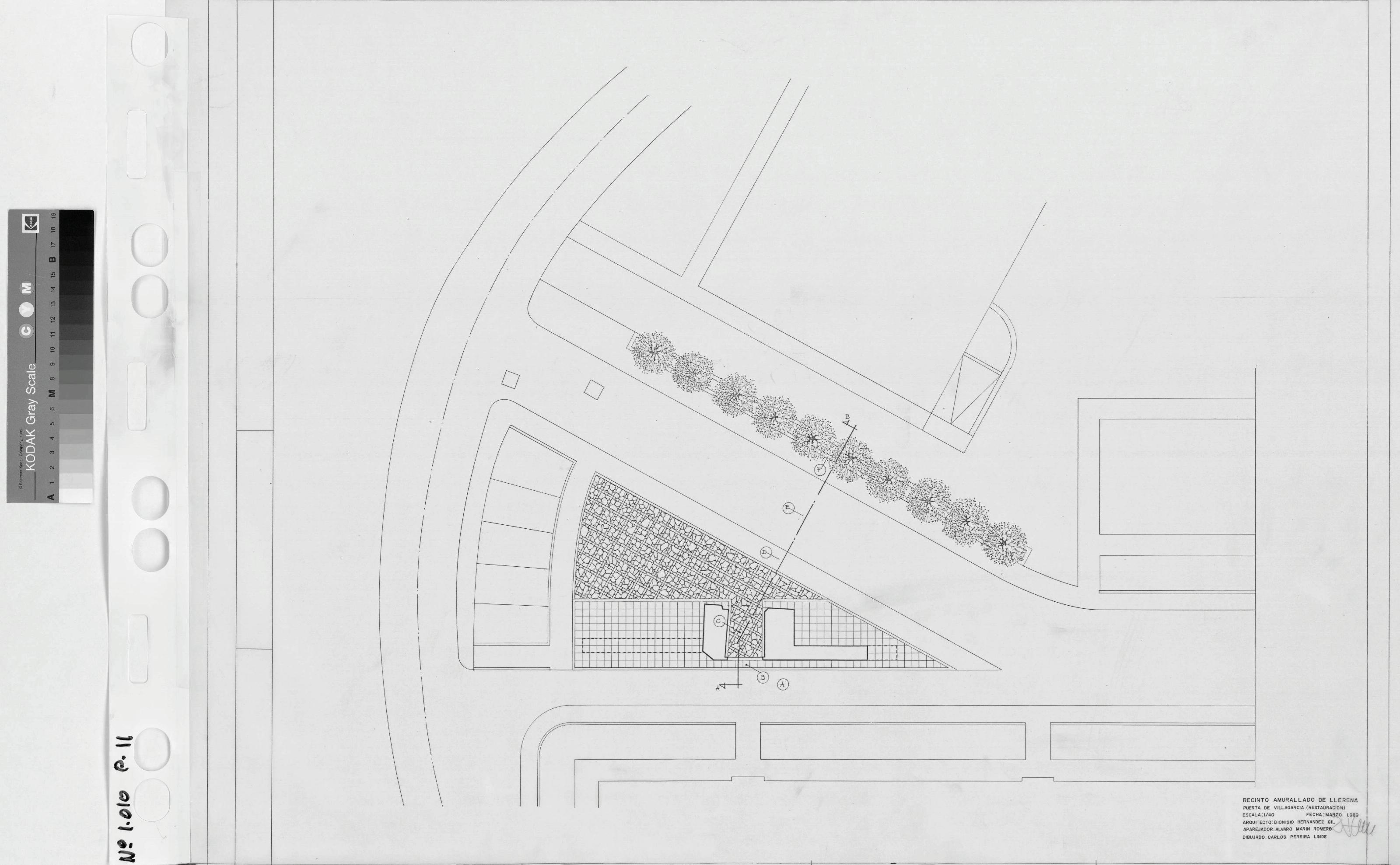 PUERTA DE VILLAGARCIA (RECINTO AMURALLADO) LLERENA. (Badajoz): PLANTA PUERTA DE VILLAGARCIA. (restauración) Despiece de solados y jardinería en un entorno reducido de la puerta . Especifica con letras la situación de los diversos detalles y secciones de los planos anteriores