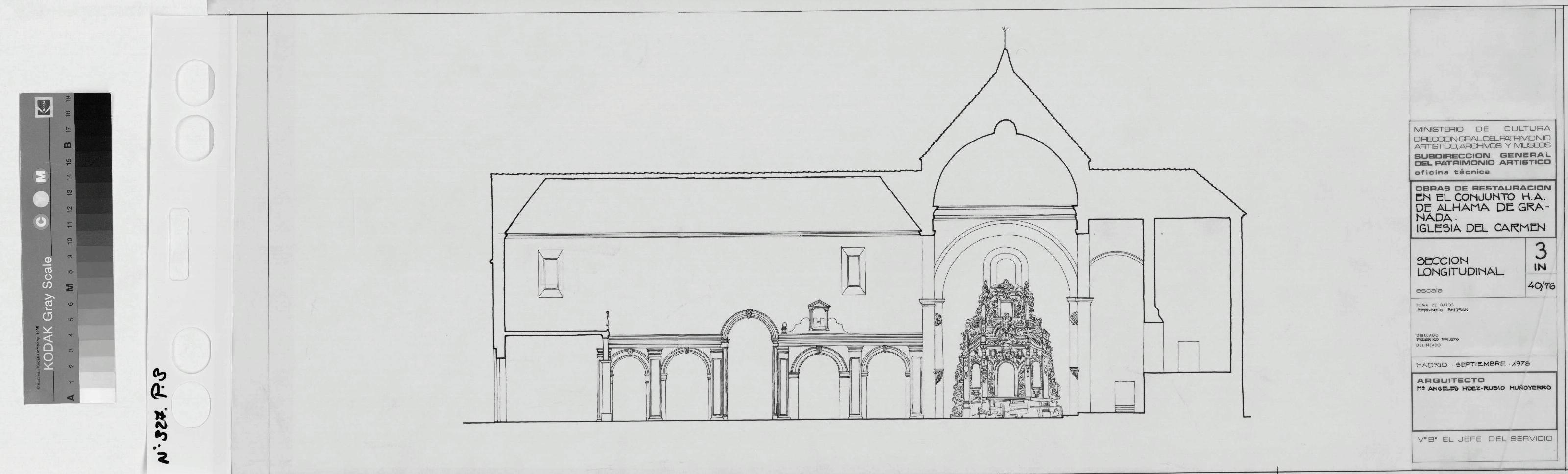 IGLESIA DEL CARMEN. - GRANADA-: SECCION LONGITUDINAL, plano sin cotas