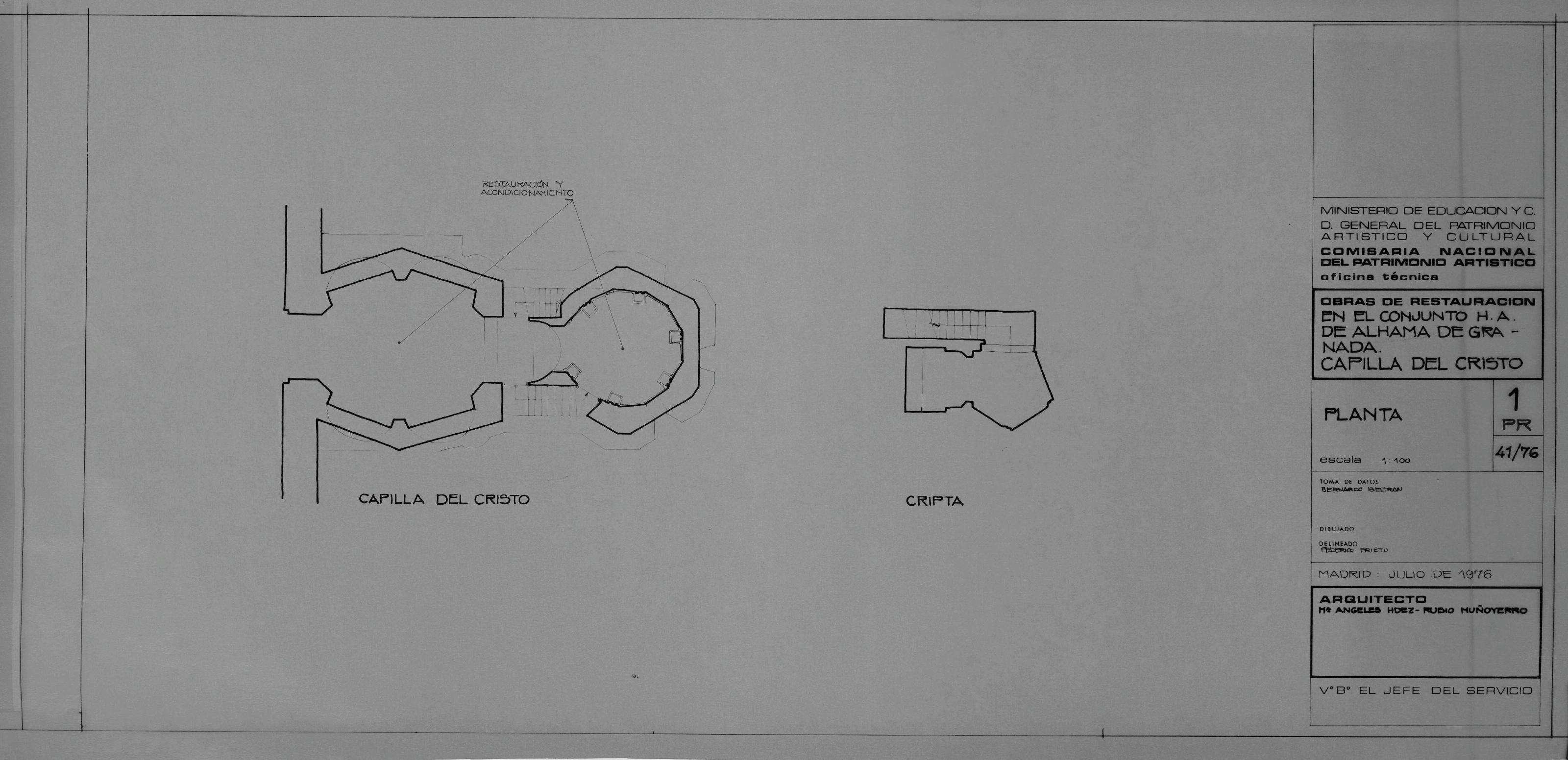 CAPILLA DEL CRISTO .- EN EL CONJUNTO HISTORICO ARTISTICO DE ALHAMA - GRANADA-: PLANTA, proyecto de restauracion y acondicionamiento de la capilla del cristo y la cripta, plano sin acotar.