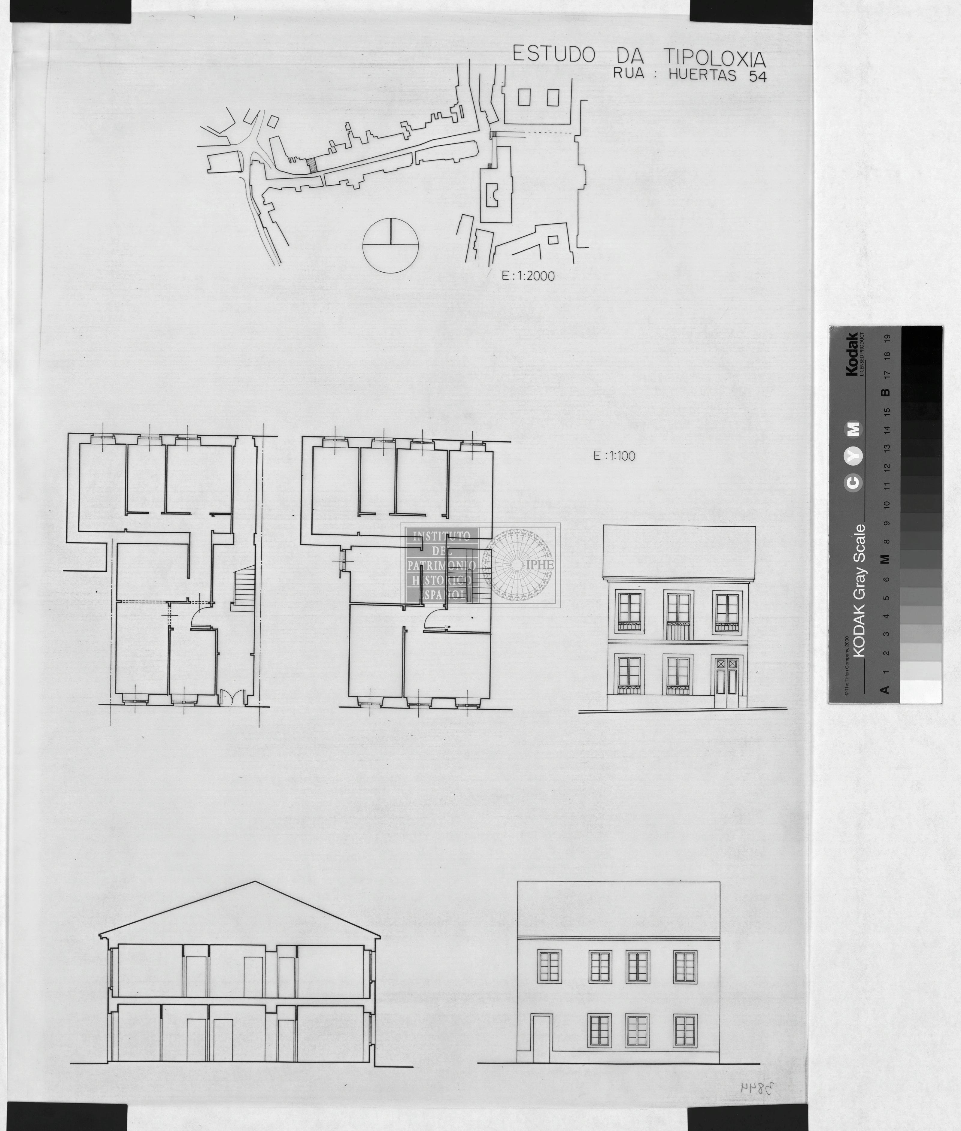 LEVANTAMIENTO DEL CASCO HISTORICO DE SANTIAGO DE COMPOSTELA: RUA HUERTAS Nº 54 (PLANTA Y ALZADO)