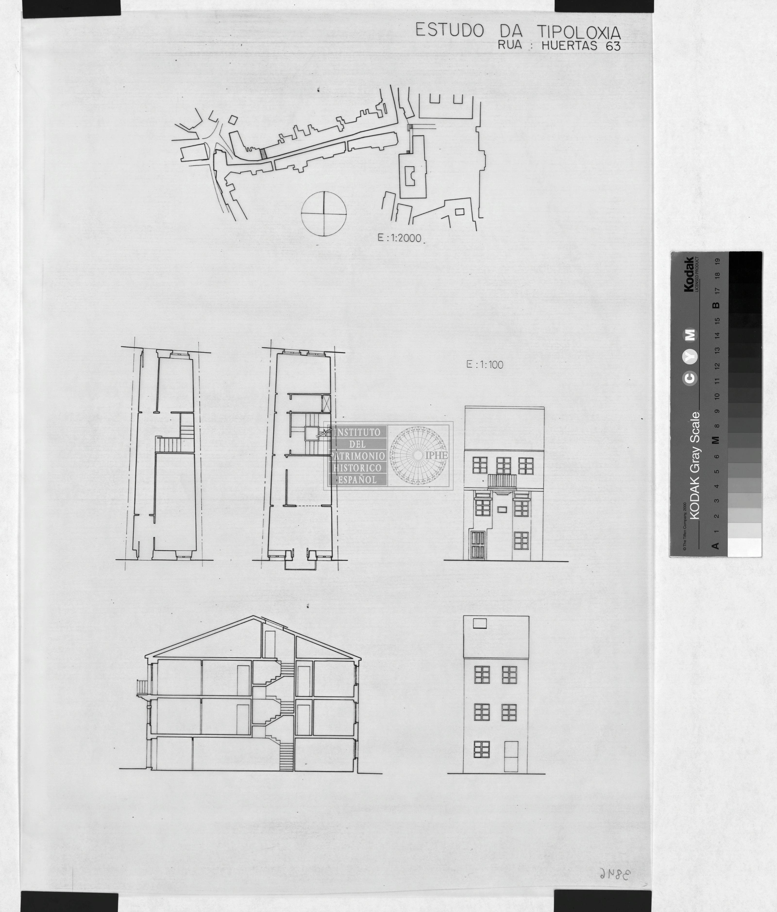 LEVANTAMIENTO DEL CASCO HISTORICO DE SANTIAGO DE COMPOSTELA: RUA HUERTAS 63 (PLANTA Y ALZADO)