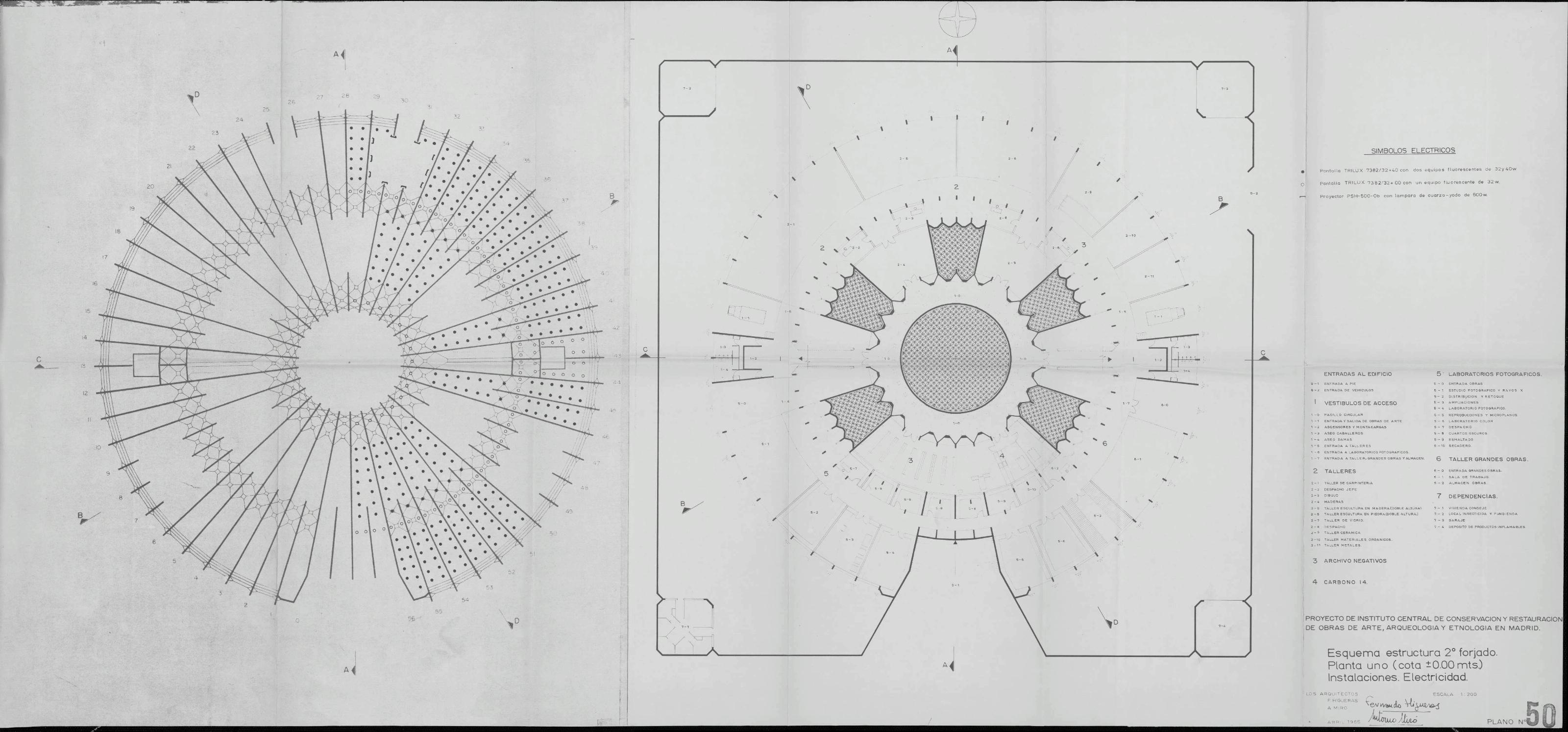 INSTITUTO DEL PATRIMONIO HISTORICO ESPAÑOL: ESQUEMA ESTRUCTURA. (SEGUNDO) FORJADO. PLANTA UNO: (COTA ±0,00 mts) INSTALACIONES: ELECTRICIDAD