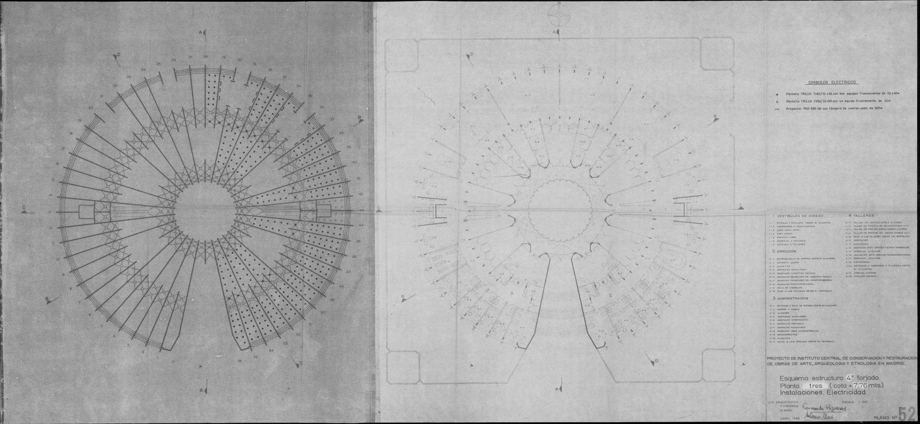 INSTITUTO DEL PATRIMONIO HISTORICO ESPAÑOL: ESQUEMA ESTRUCTURA. (CUARTO) FORJADO. PLANTA TRES: (COTA +7,76 mts) INSTALACIONES: ELECTRICIDAD