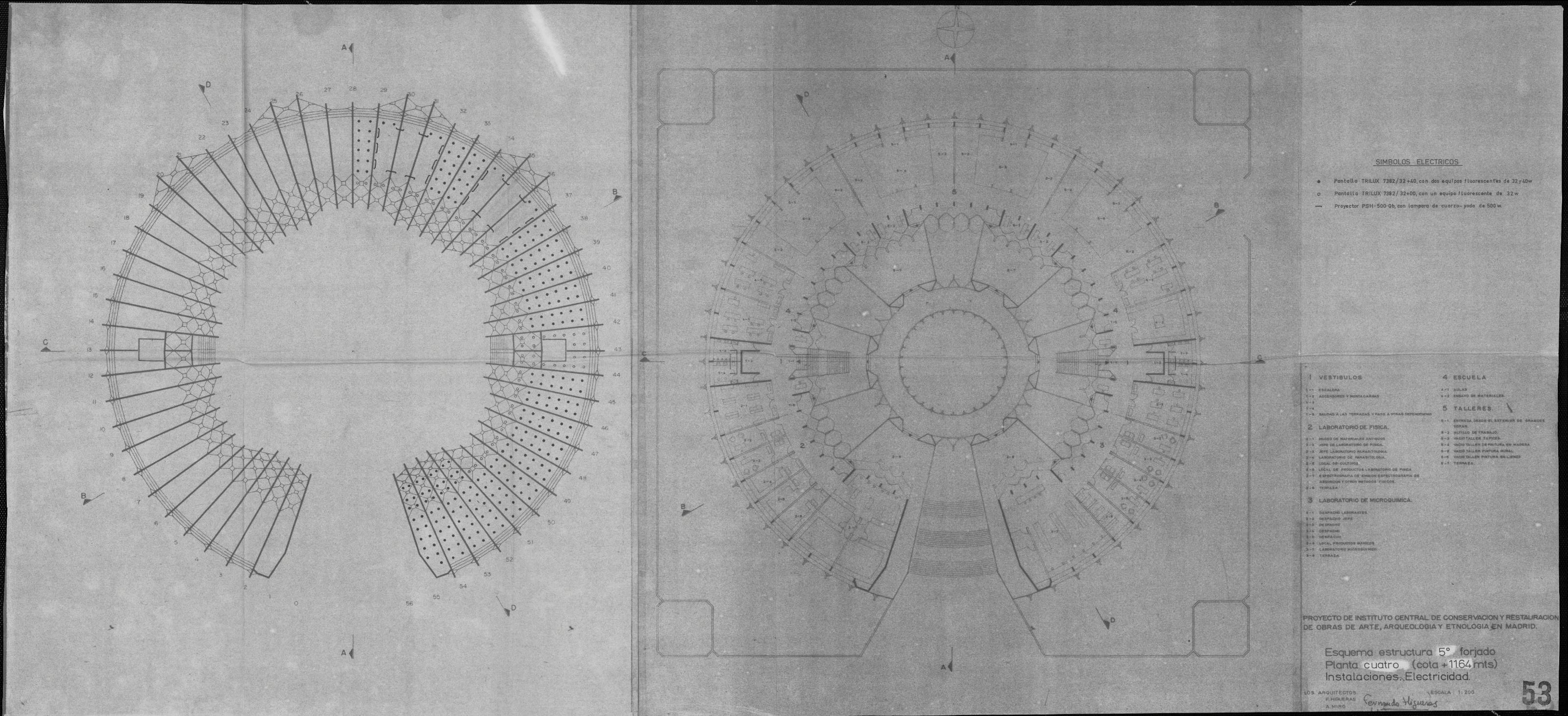 INSTITUTO DEL PATRIMONIO HISTORICO ESPAÑOL: ESQUEMA ESTRUCTURA. (QUINTO) FORJADO. PLANTA CUATRO: (COTA +11,64 mts) INSTALACIONES: ELECTRICIDAD