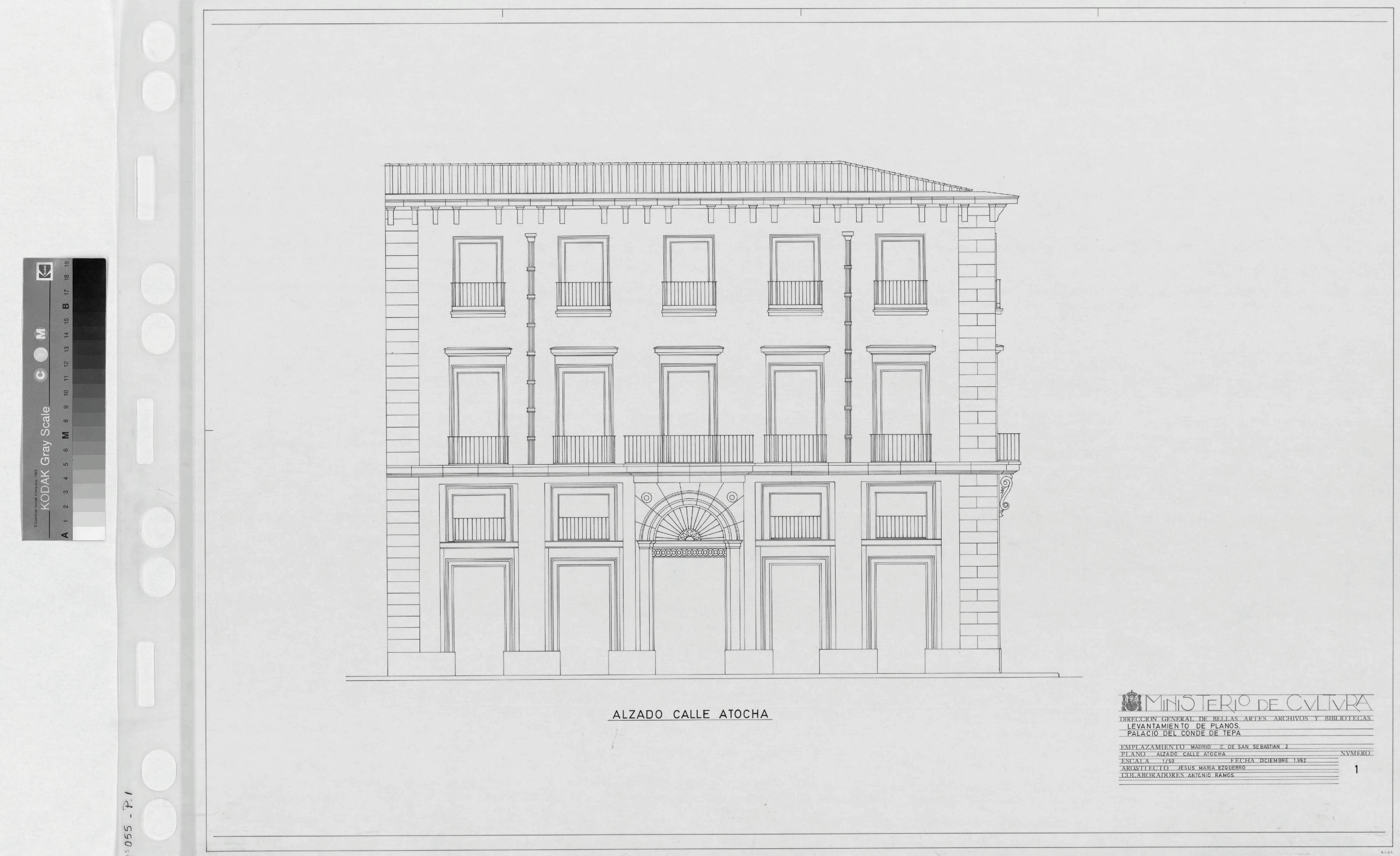 PALACIO DEL CONDE DE TEPA - MADRID-: ALZADO A CALLE ATOCHA, Plano dibujado con detalle, marca acceso principal al edificio, plano sin cotas. Emplazamiento a calle de San Sebastian nº 2.