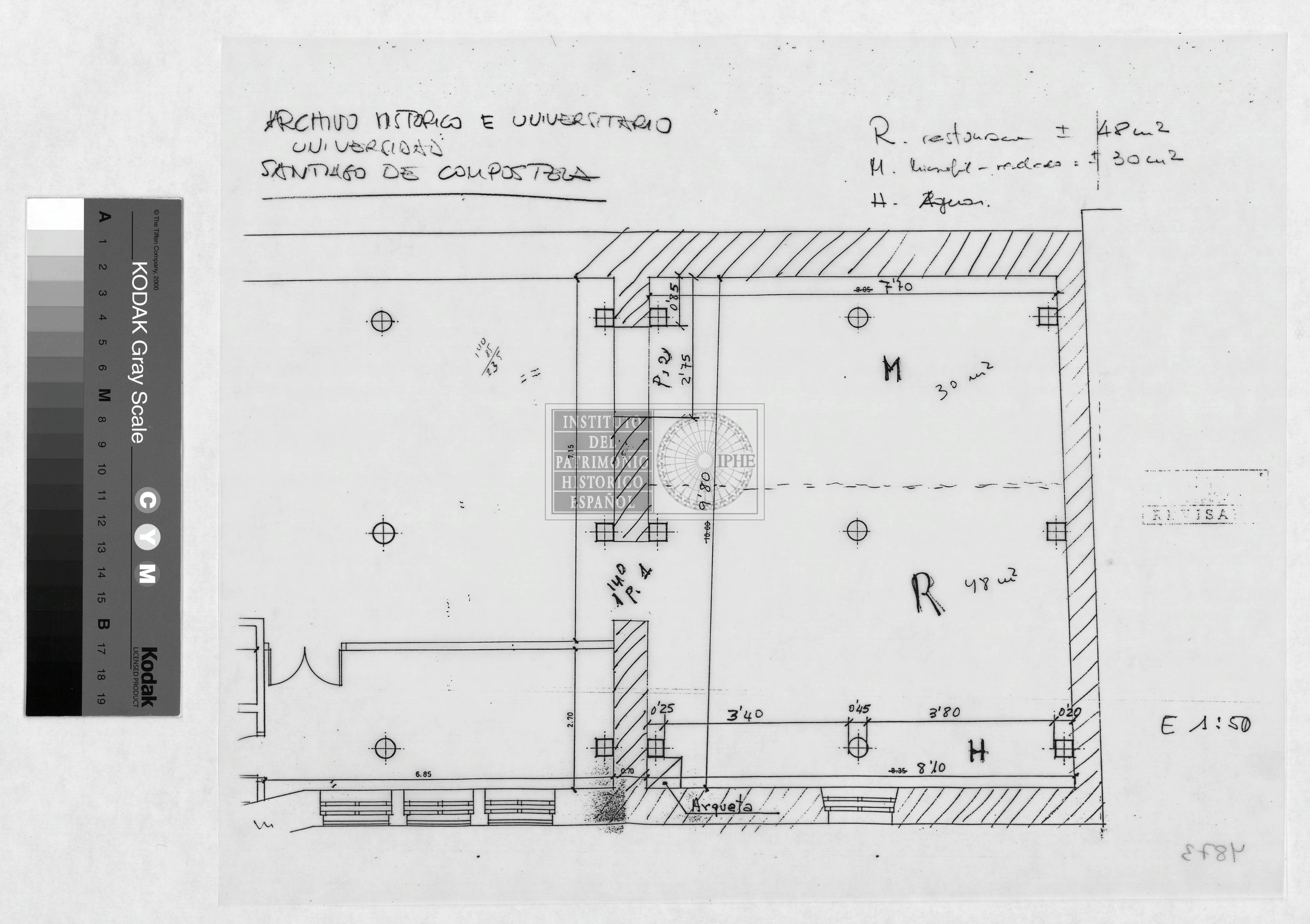 LABORATORIO DE RESTAURACION EN ARCHIVO HISTORICO DE SANTIAGO DE COMPOSTELA: PLANTA CON COTAS