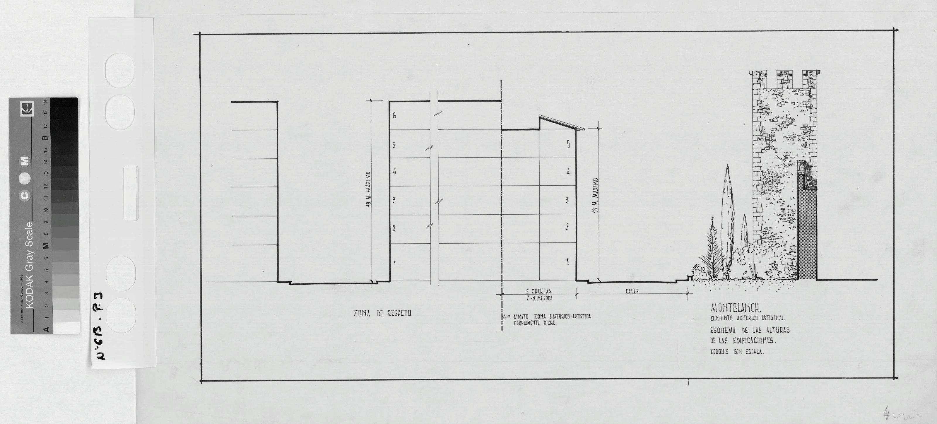CONJUNTO HISTORICO ARTISTICO DE MONTBLANCH: PLANO ESQUEMAS DE ALTURAS DE EDIFICIOS. CROQUIS SIN ESCALA