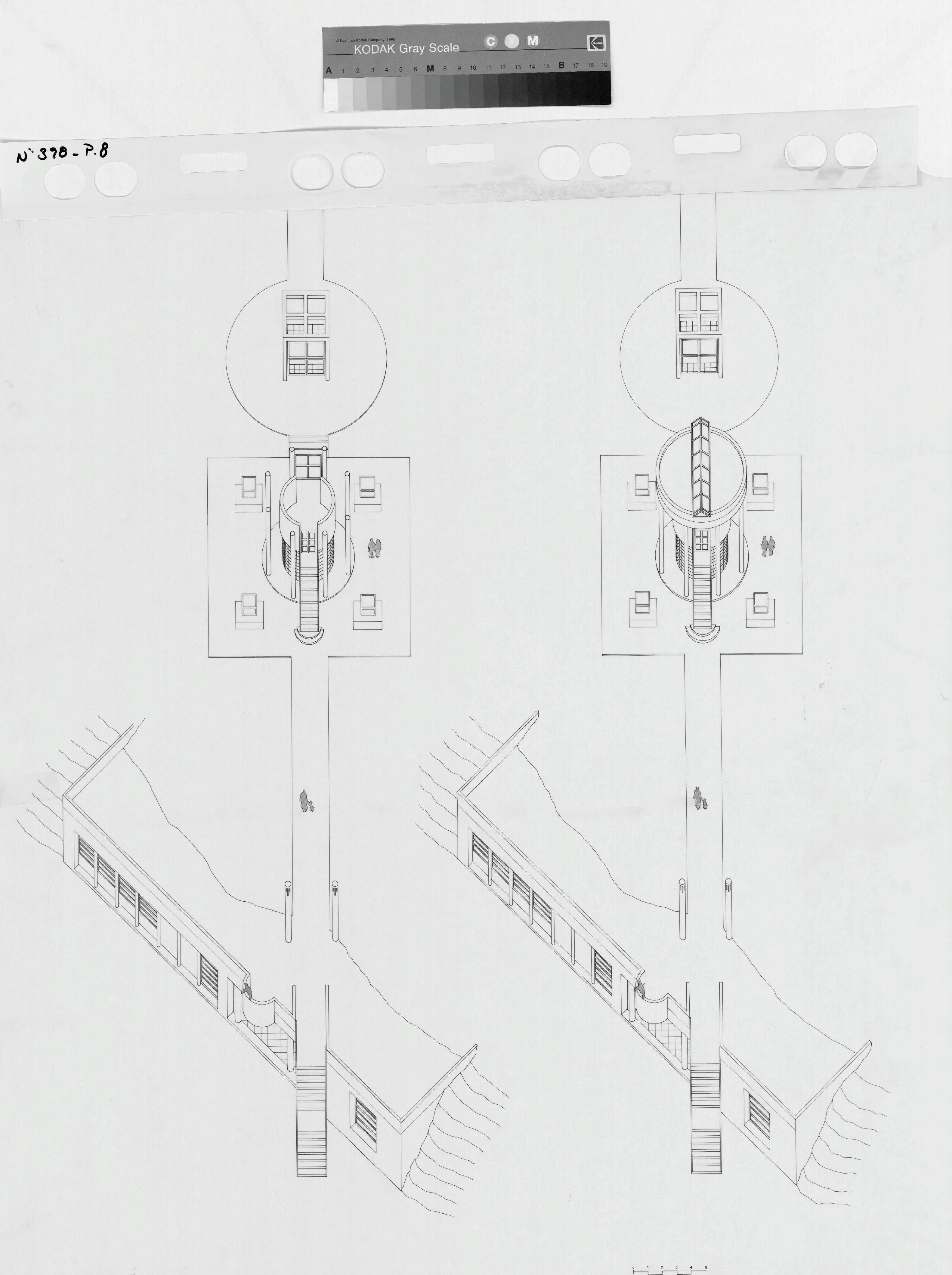 MUSEO DE SITIO - REGINA En REINA (Badajoz): PERSPECTIVAS (2) 2 Perspectivas elevadas (son las originales del plano 1) Sin cotas ni notas Sin sello ni recuadro, no parece plano de proyecto tiene escala gráfica