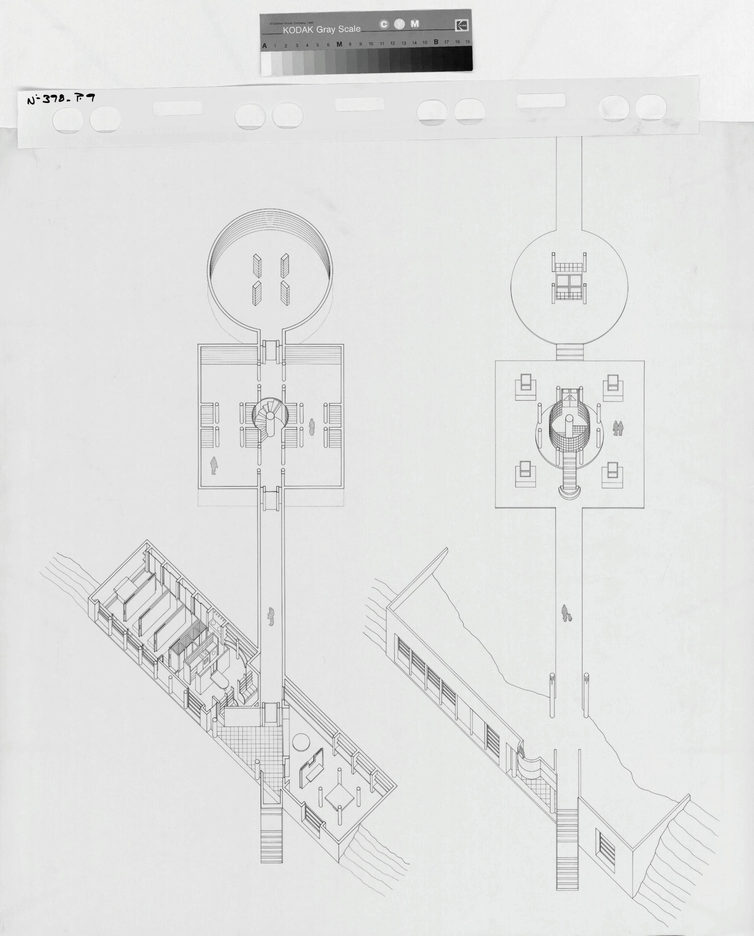 MUSEO DE SITIO - REGINAEn REINA (Badajoz): PERSPECTIVAS (2)2 Perspectivas elevadas (son las otras 2 originales del plano 1)Sin cotas ni notasSin sello ni recuadro, no parece plano de proyecto