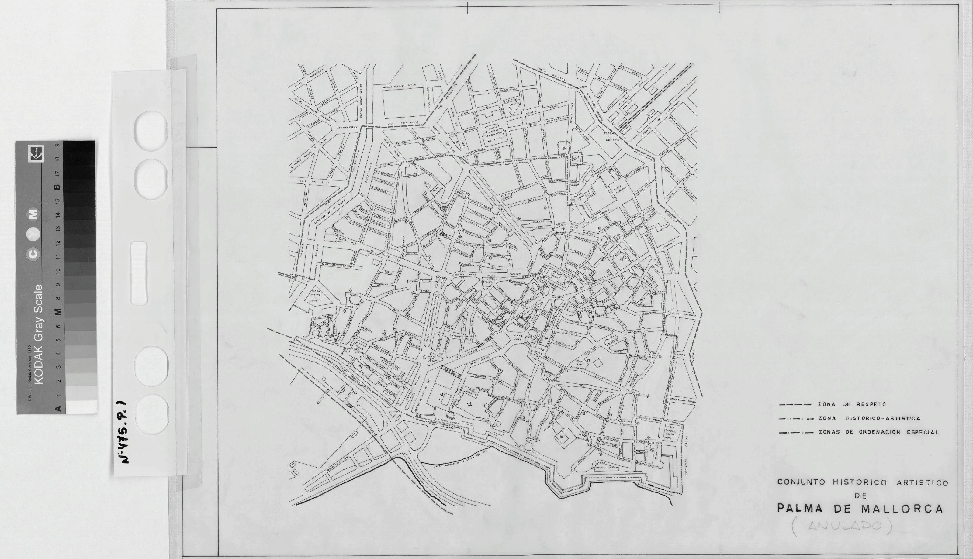 CONJUNTO HISTORICO ARTISTICO DE PALMA DE MALLORCA.: PLANO DE SITUACION. Nos marca la zona de respeto, la zona historica artistica, y la zona de ordenacion especial. Nomenclatura de calles