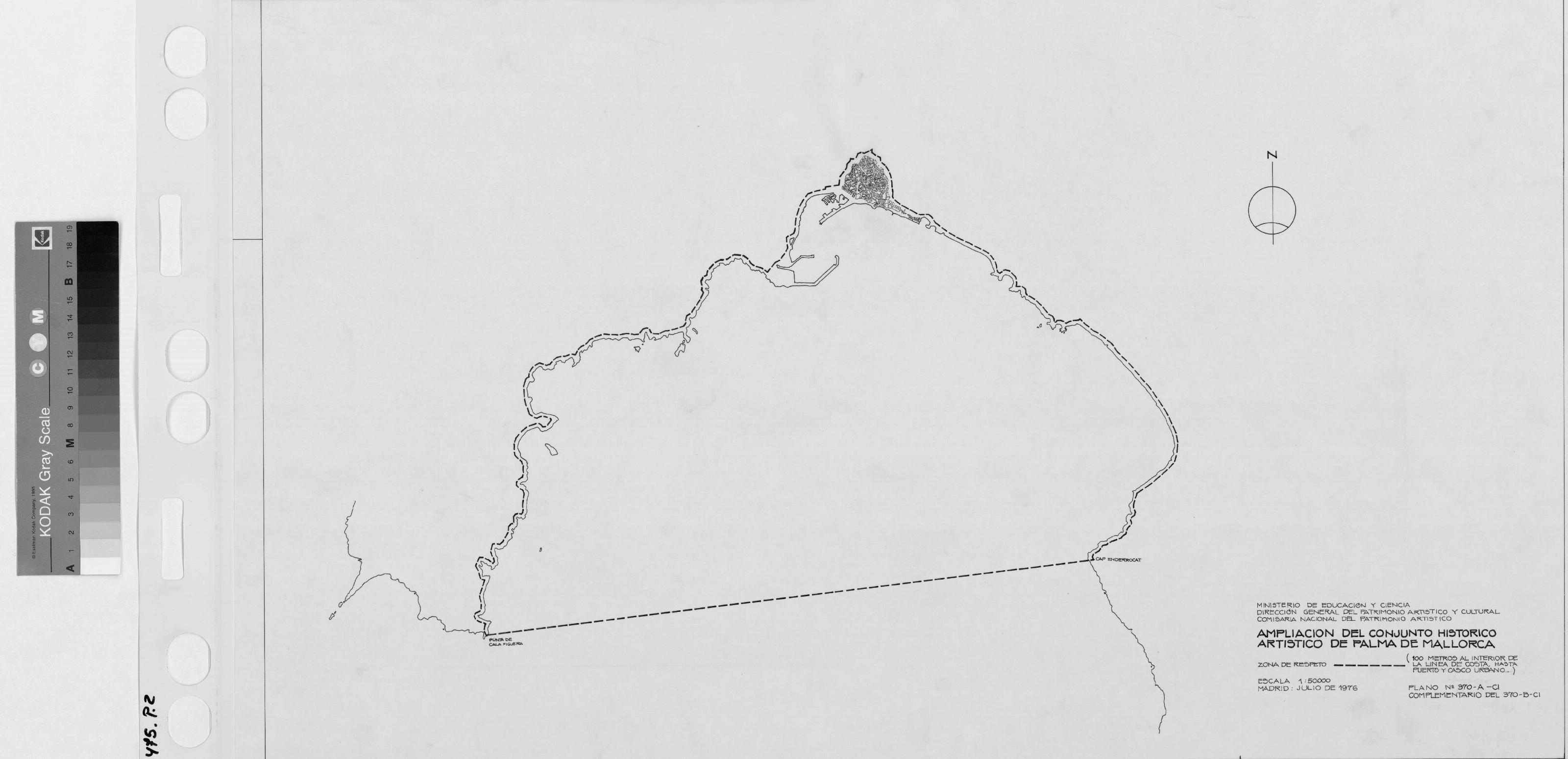 CONJUNTO HISTORICO ARTISTICO DE PALMA DE MALLORCA.: PLANO DE SITUACION. Nos marca la zona de respeto ,(100m. Al interior de la linea de costa, hasta puerto y casco urbano )